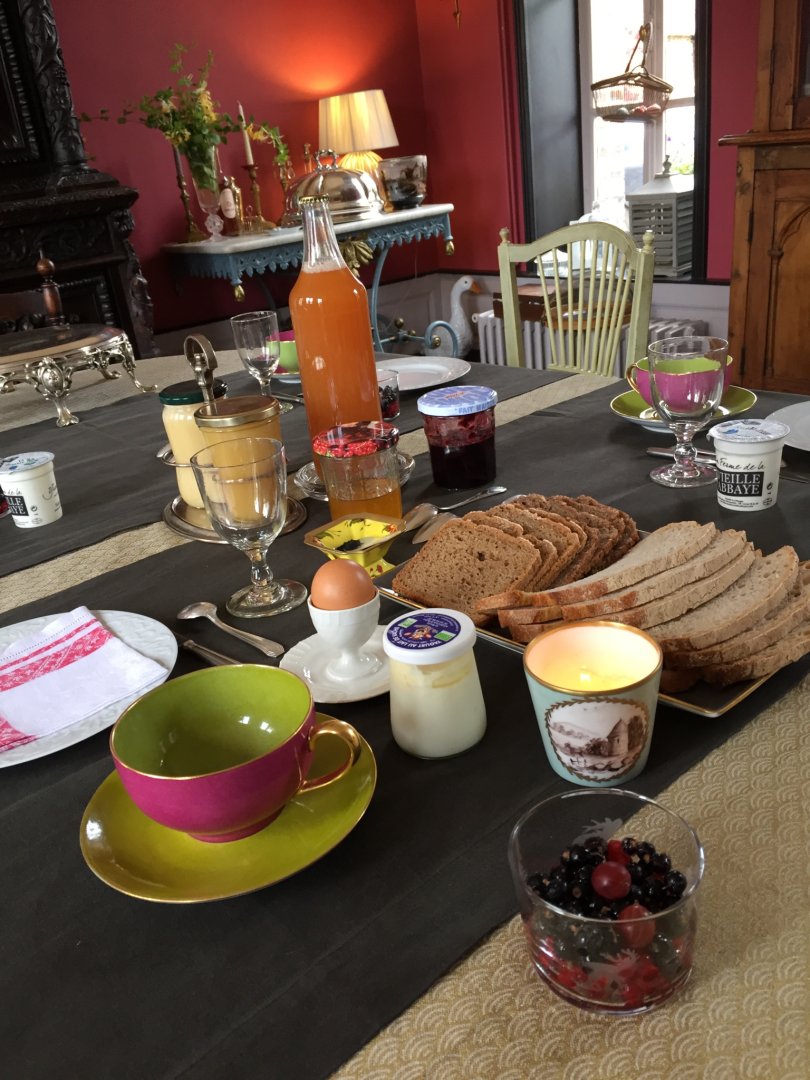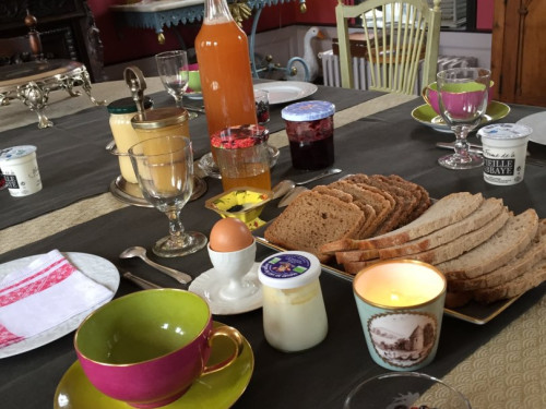 Vous aimerez le petit déjeuner avec des produits maison, biologiques ou du terroir (beurre fermier, jus de pomme maison, miel récolté à Rouge maison, pains bio cuits au feu de bois).