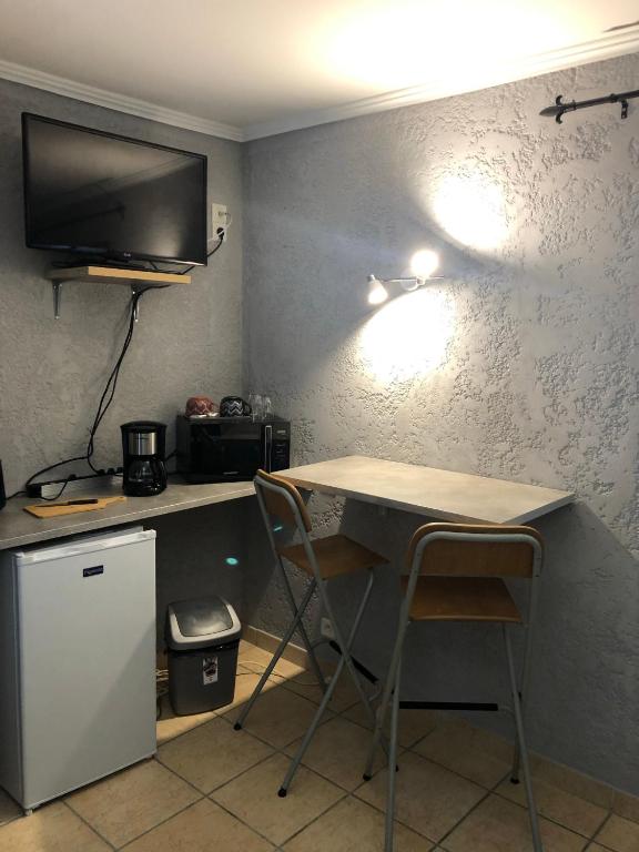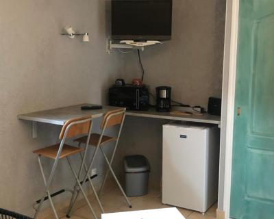 Un réfrigérateur, un micro-ondes et un grille-pain sont également à votre disposition, de même qu’une machine à café.