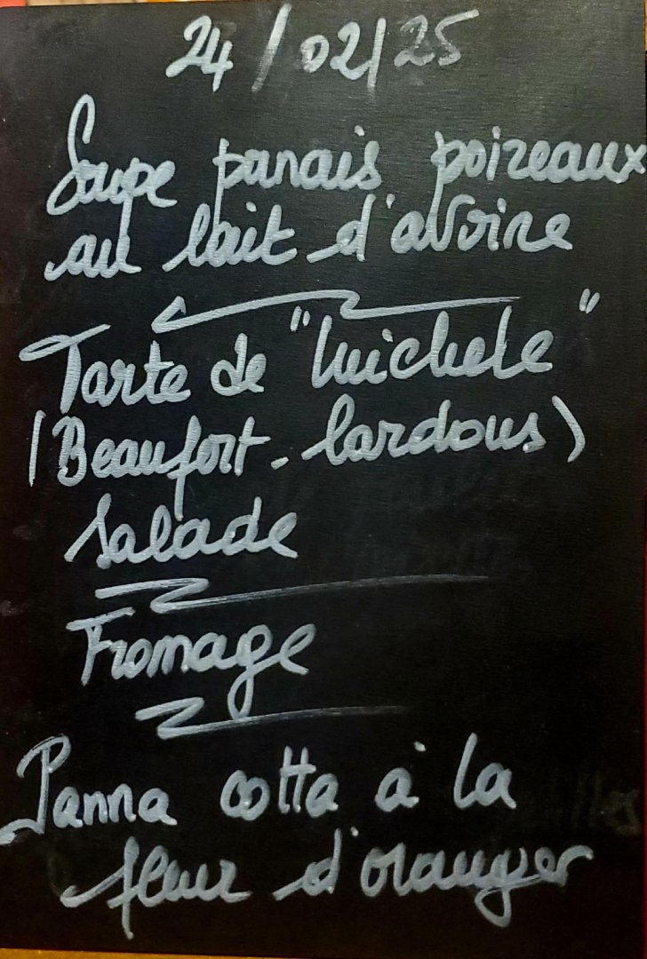 Mais bien sûr, ce n’est pas seulement ce dernier repas qu’on retient. Chaque soir, Marie nous a cuisiné des plats équilibrés, variés, toujours très bien présentés, et surtout très bons. Elle a un vrai savoir-faire, une attention permanente aux besoins des curistes, et cette gentillesse constante qui rend tout plus léger, plus doux. Dès 6h15 chaque matin, elle était là avec le sourire pour nous servir un petit déjeuner complet : fruits frais, fromages, pain complet, beurre, thé, café… Ce qui nous a permis de profiter pleinement des soins aux thermes, du hammam, de la piscine de Salins, des belles balades en montagne l’après-midi ou le week-end.