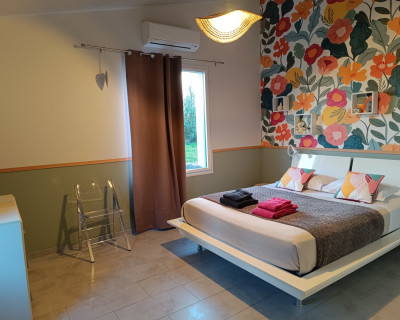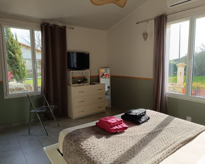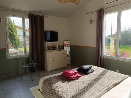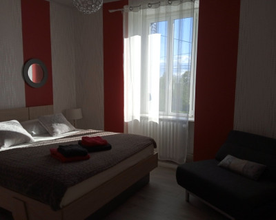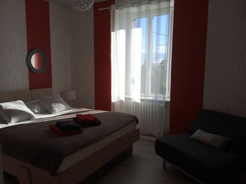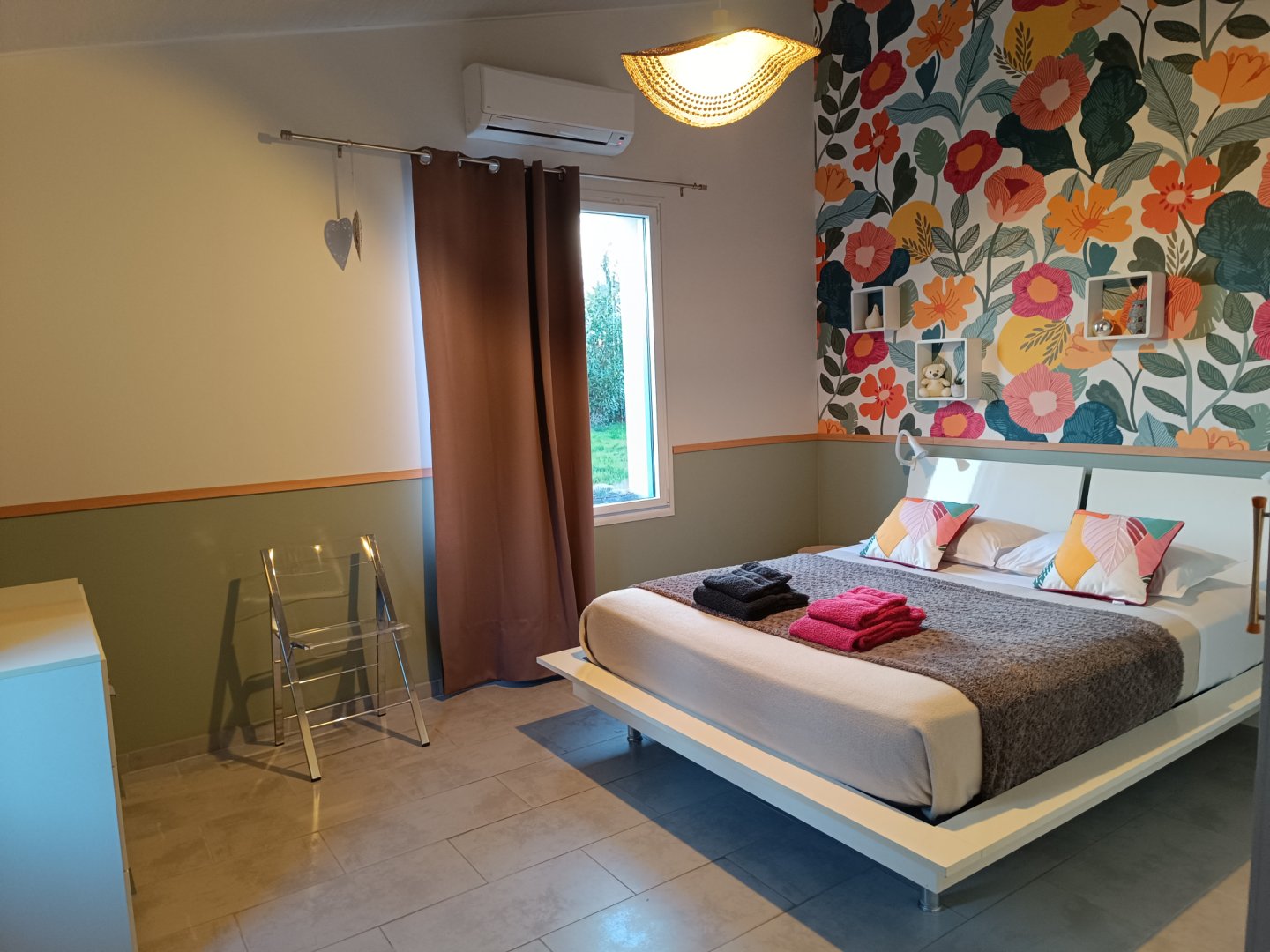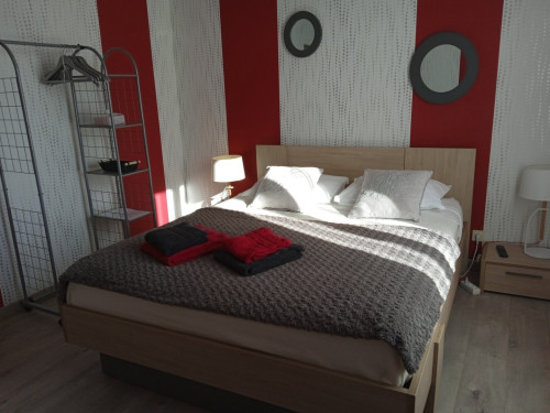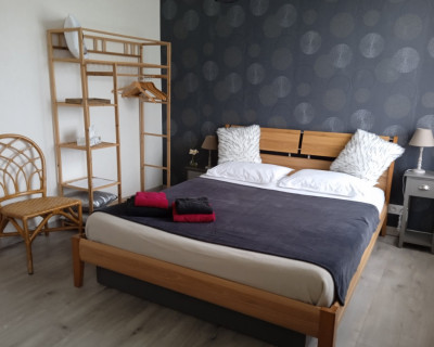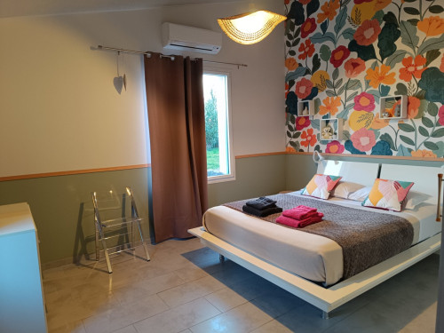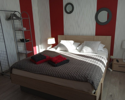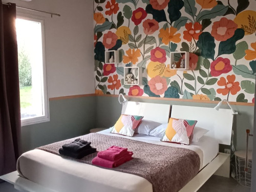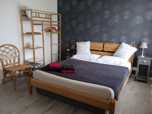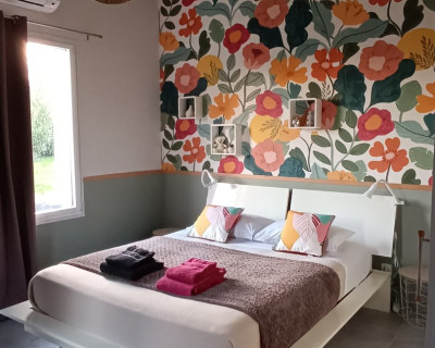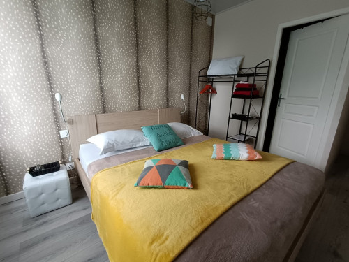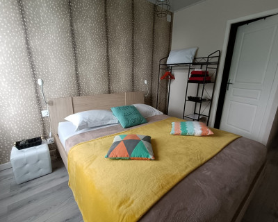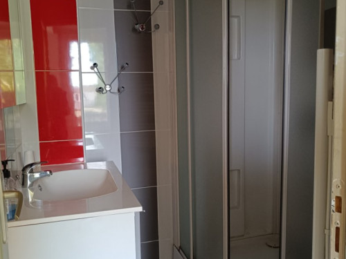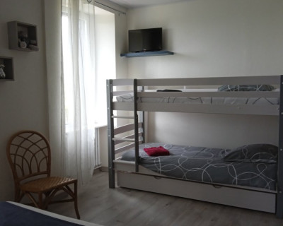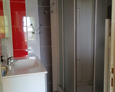 Partie chambre avec lits superposés, salle de bain et wc séparés