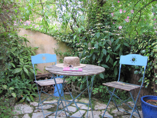 Vous aimerez le salon de carreaux ciments aux douces teintes ocre /bleues, la terrasse privée à l'ombre du rosier