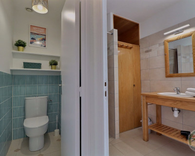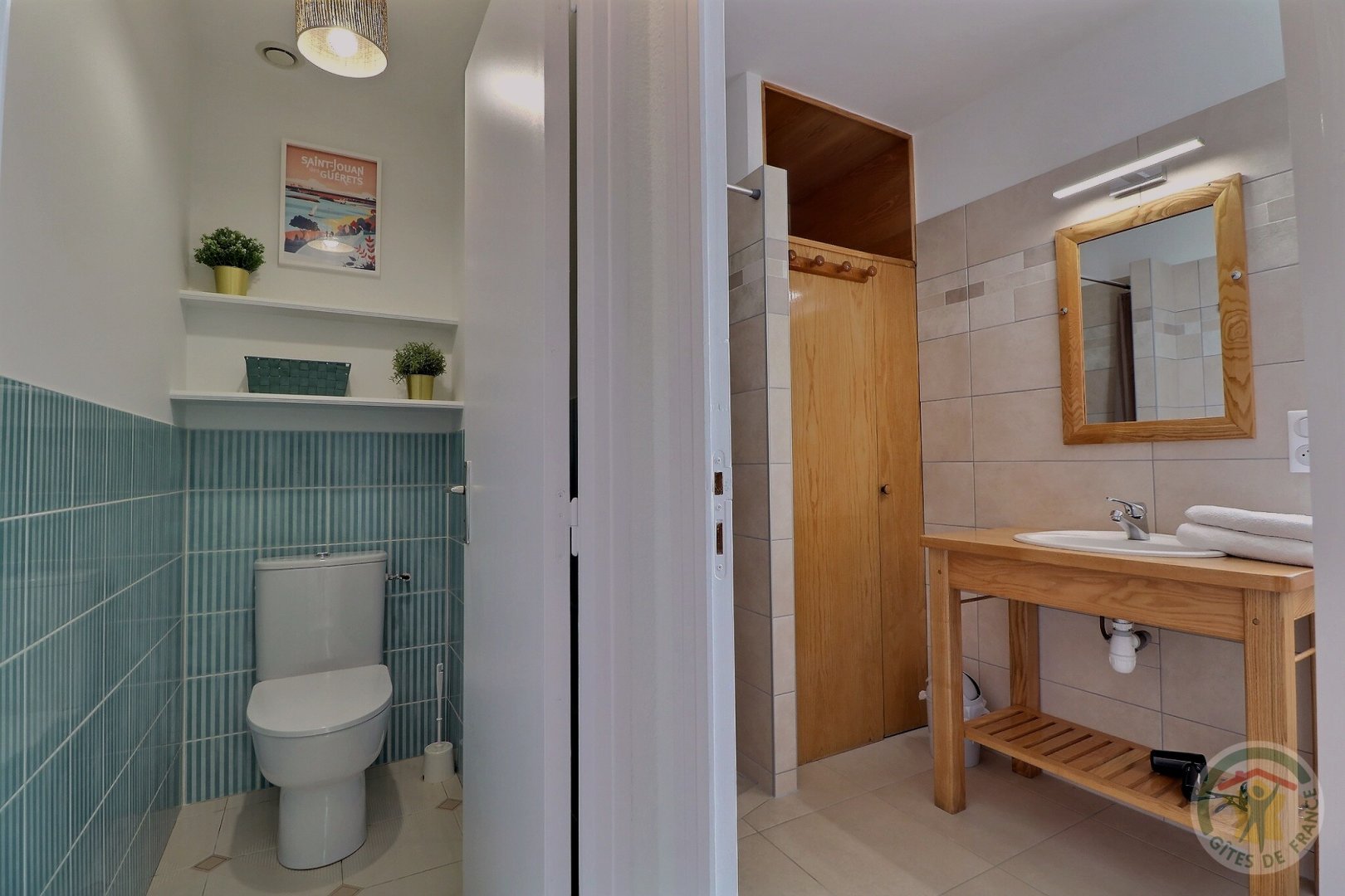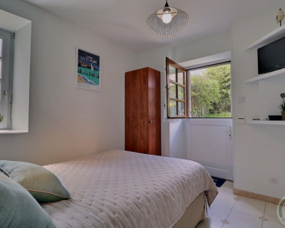 Elle se trouve au RDC avec entrée indépendante et accès direct sur la terrasse, avec salle d'eau et WC privés, salon de jardin privé, bouilloire, sèche-cheveux …