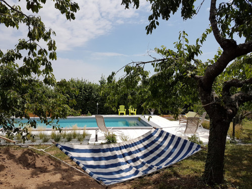 The outdoor swimming pool installed in the orchard without vis-à-vis welcomes you for a moment of relaxation in the sun or bath in salt water.
