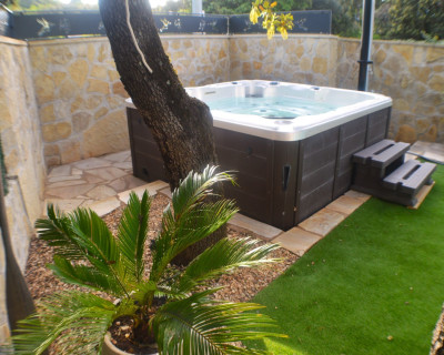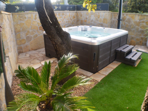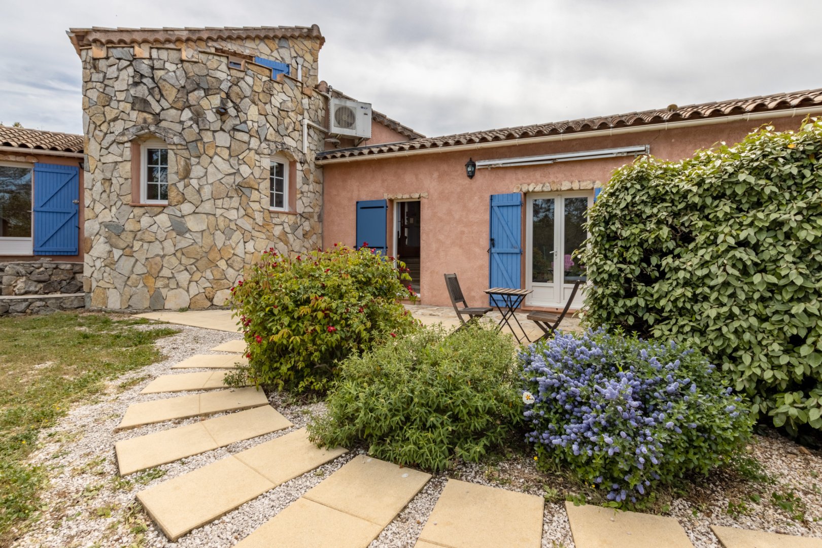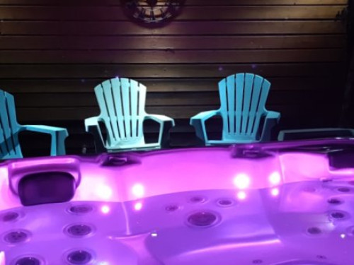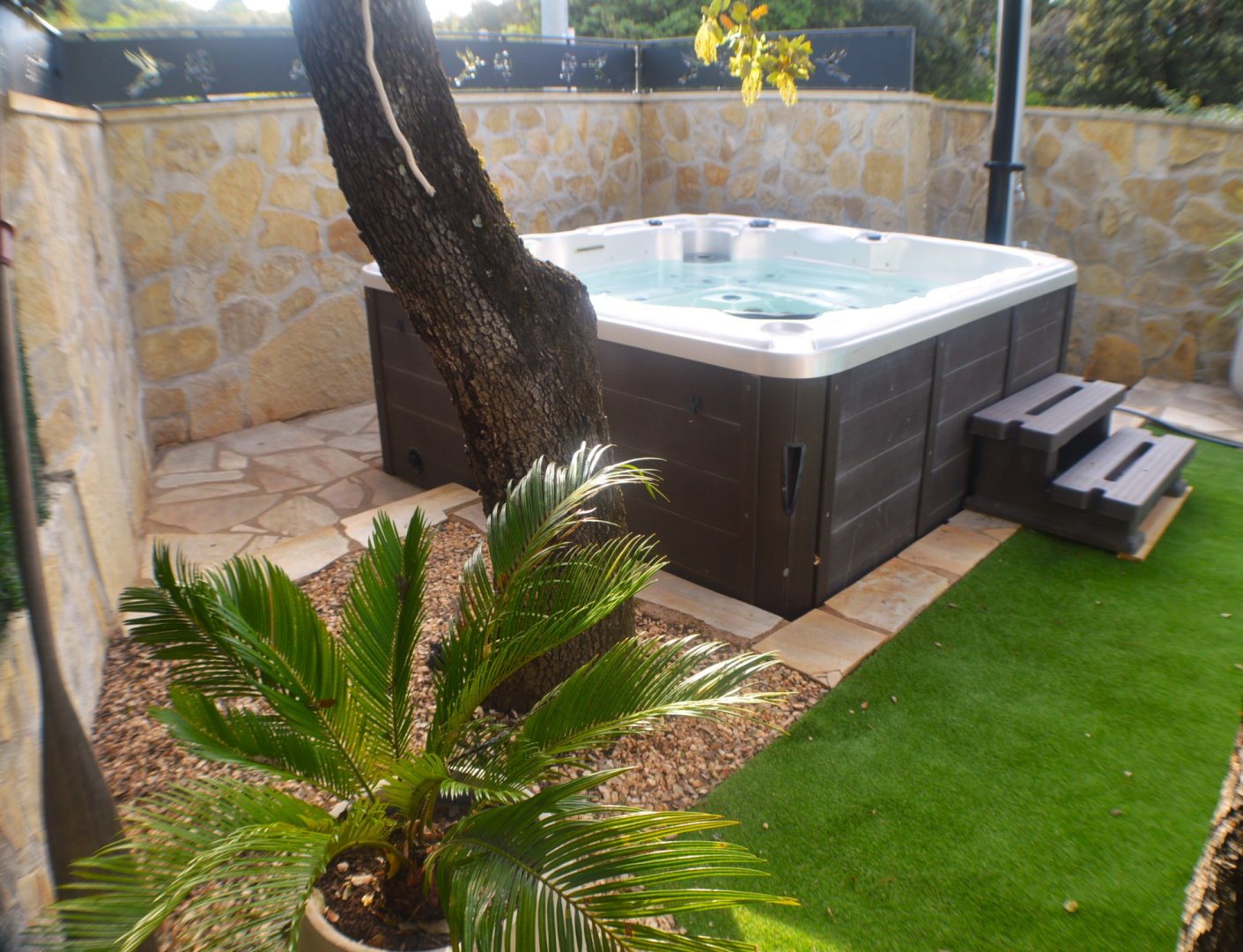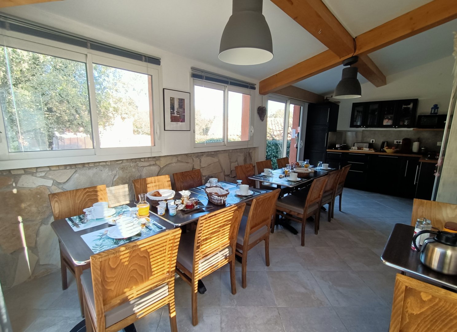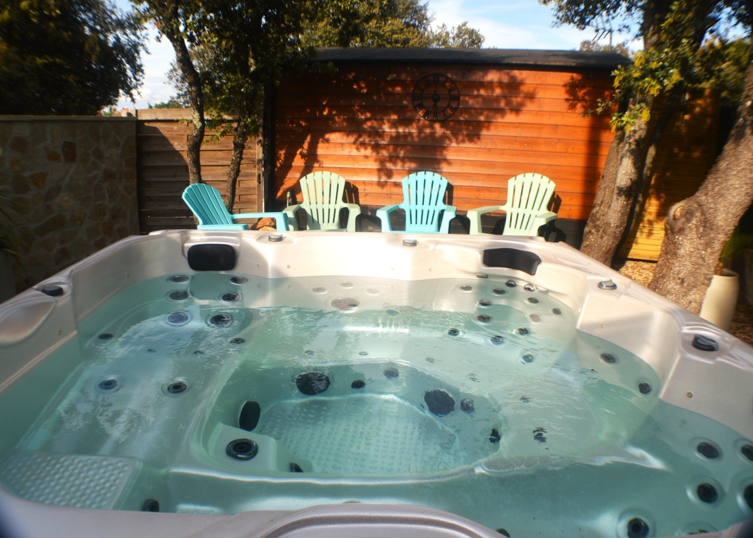 Cette chambre possède sa terrasse privée avec salon de jardin.