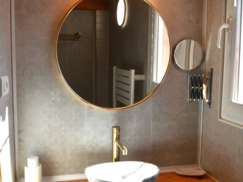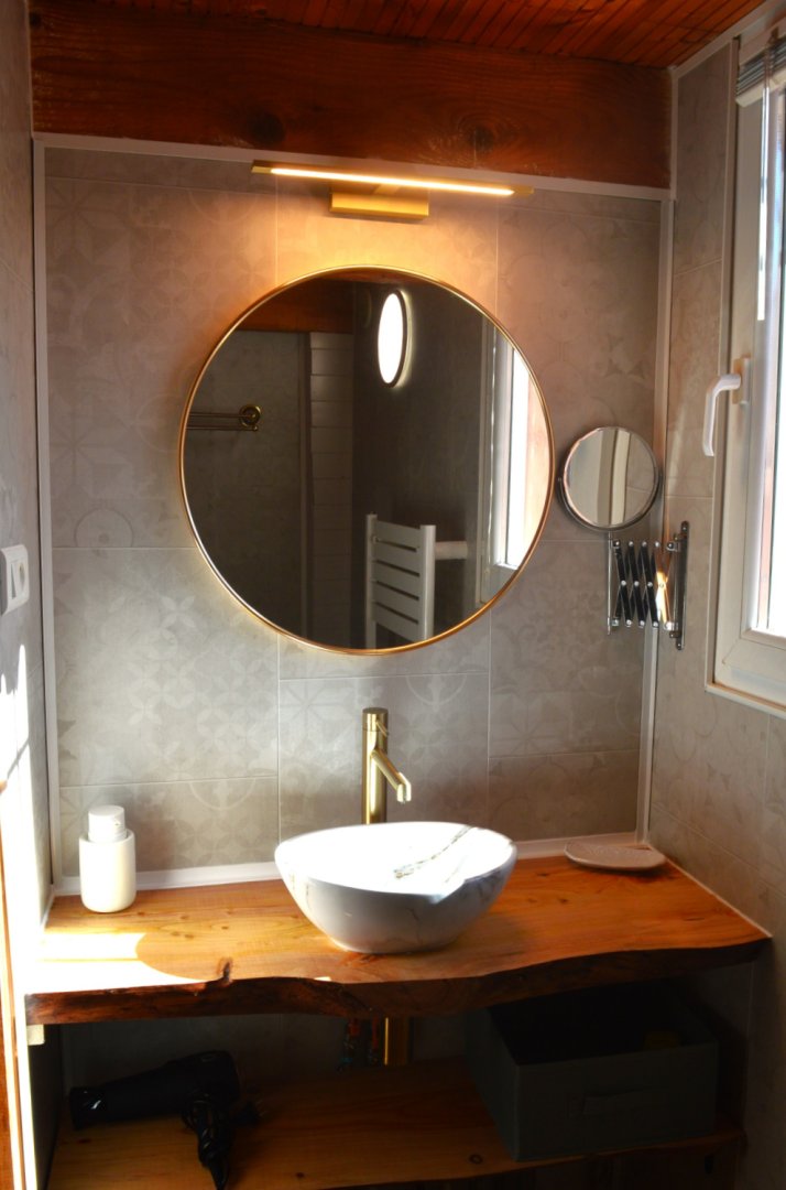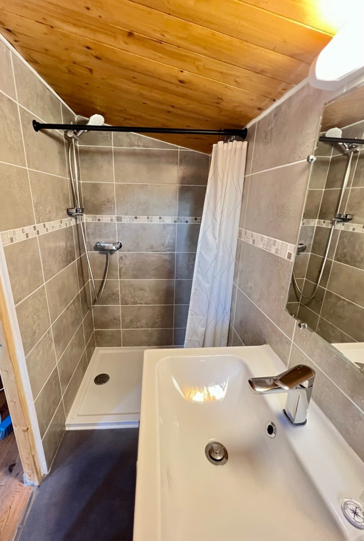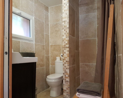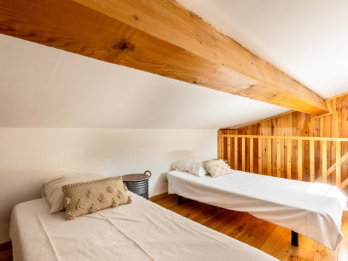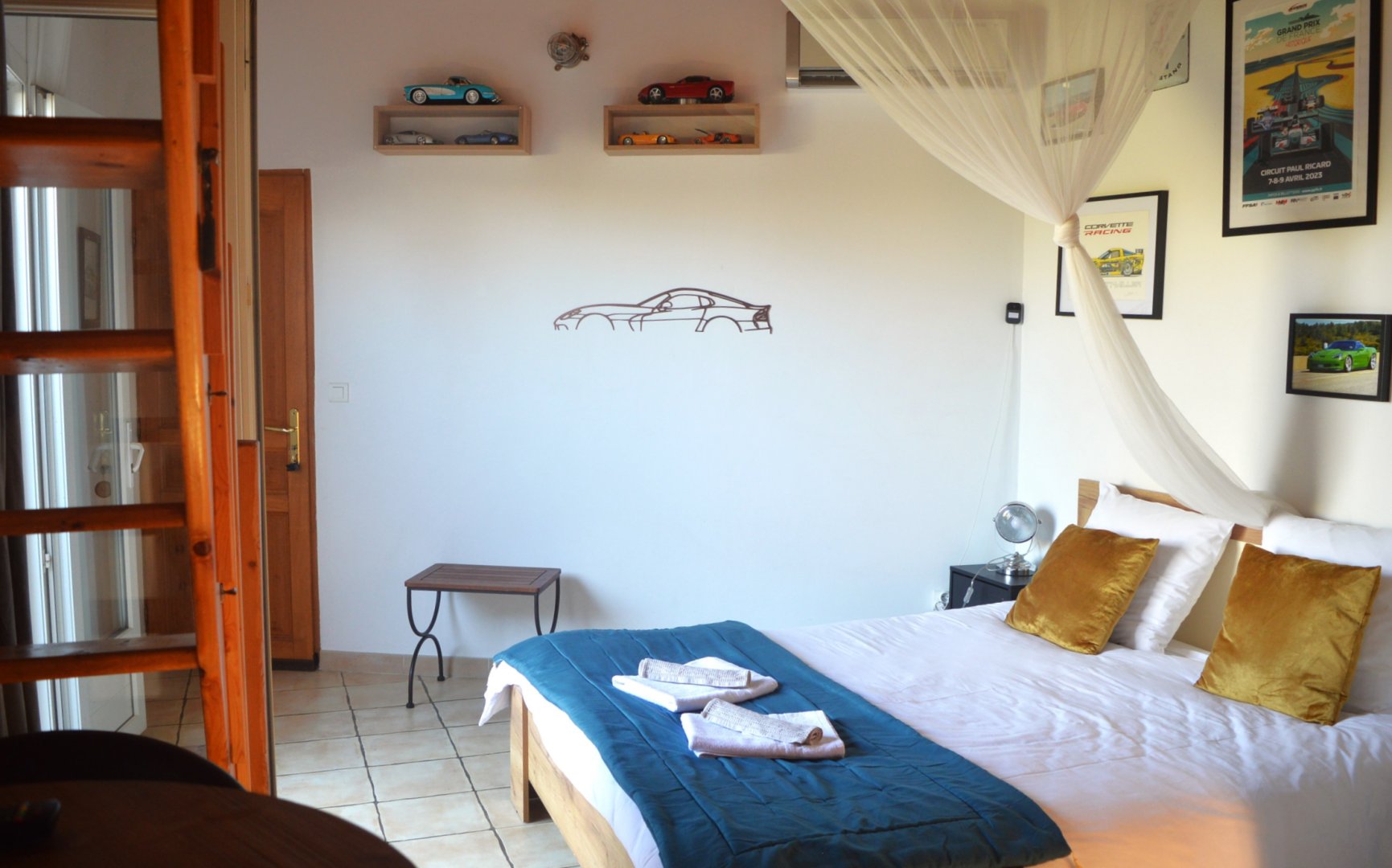 Cette chambre est entièrement climatisée et elle se compose d’une chambre avec un lit double Queen Size, d’une mezzanine avec deux lits simples 90x190 et d’une salle d’eau avec douche, lavabo et WC. Possibilité, sur demande de rajouter un lit bébé.