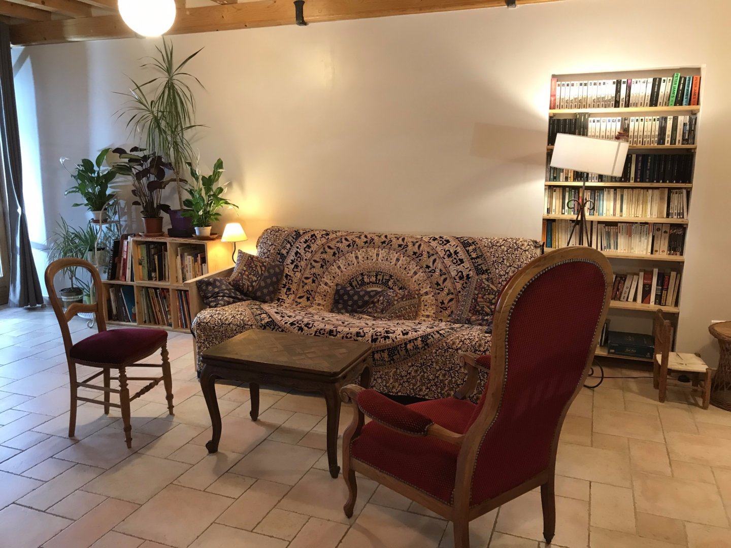 Sauna accessible sur demande (15 € la séance), salle de bain avec douche à l'italienne et toilettes semi-sèches au rez-de-chaussée, terrasse donnant sur le jardin et la piscine naturelle, large bibliothèque à disposition.