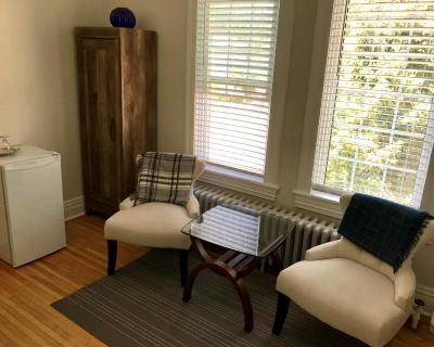Also known as the Dr. Suite, this non-smoking room offers a private entrance and an en suite bathroom. A flat-screen TV(online streaming services available), a fireplace and air conditioning are also included. WiFi, parking and daily hot breakfast are complimentary.