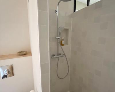 Vous trouverez une salle de bains privative avec une douche et des articles de toilette gratuits dans chaque logement, tout comme un sèche-cheveux.