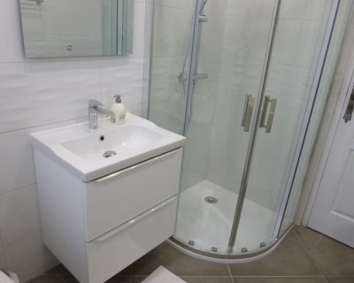 La décoration de la maisonest vieillotte et la salle de bain rose avec baignoire mais sans pare douche pourrait être mis au goût du jour.