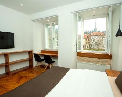 Housed in an 18th-century Zois Mansion and overlooking the Ljubljanica River, Galeria River offers elegant accommodation featuring a stylish and minimalistic design.