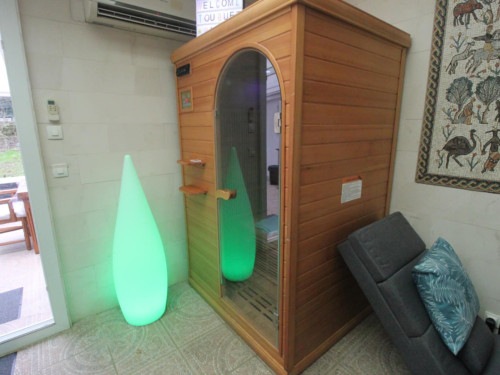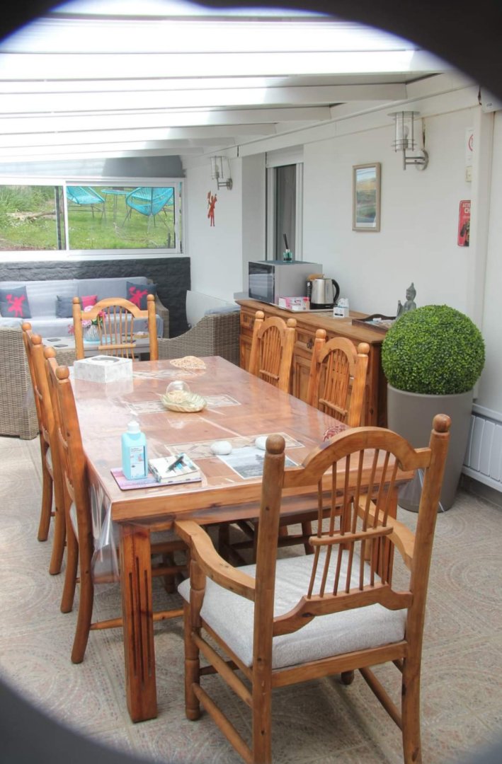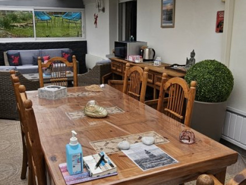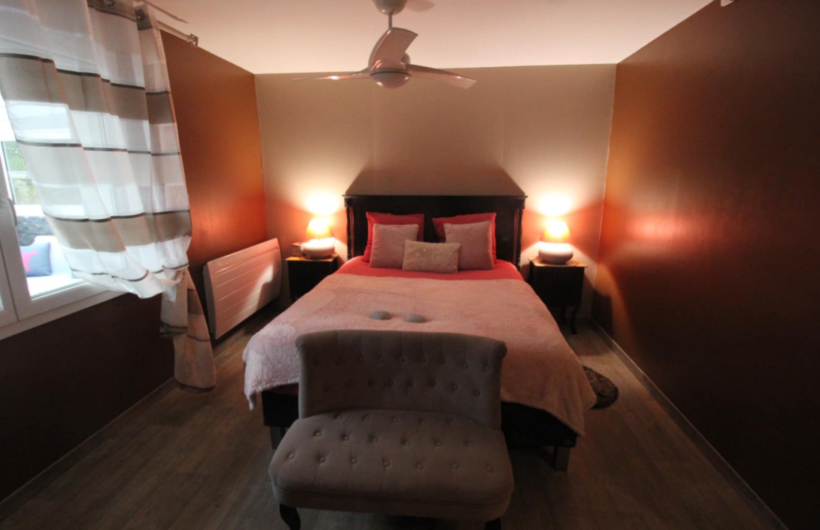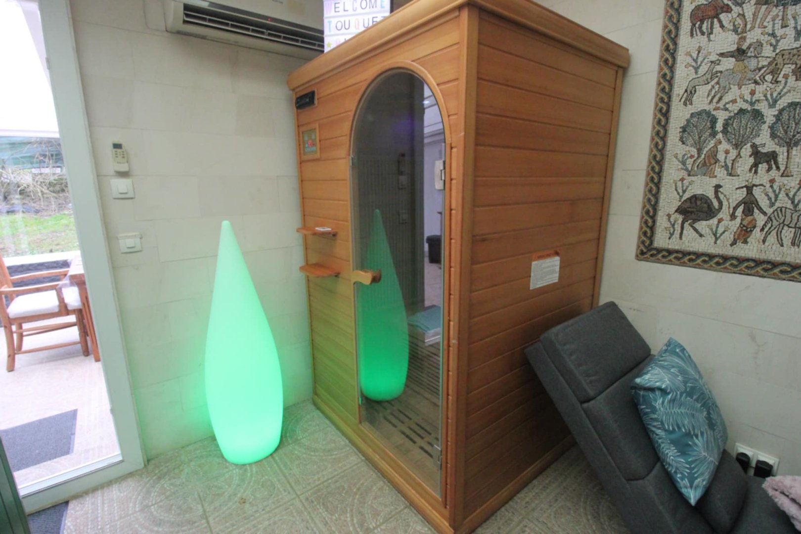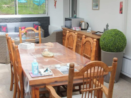 À disposition de nos hôtes, 2 belles chambres jumelées pouvant accueillir jusqu'à 4 personnes, une grande véranda avec salon - salle à manger et four multifonction, espace détente avec un grand spa 7 places (1 heure incluse), le tout donnant sur un grand jardin arboré.