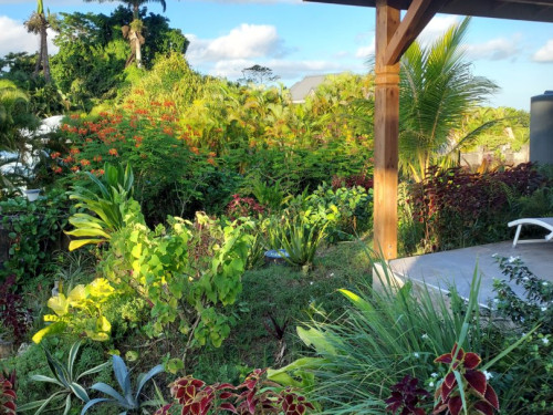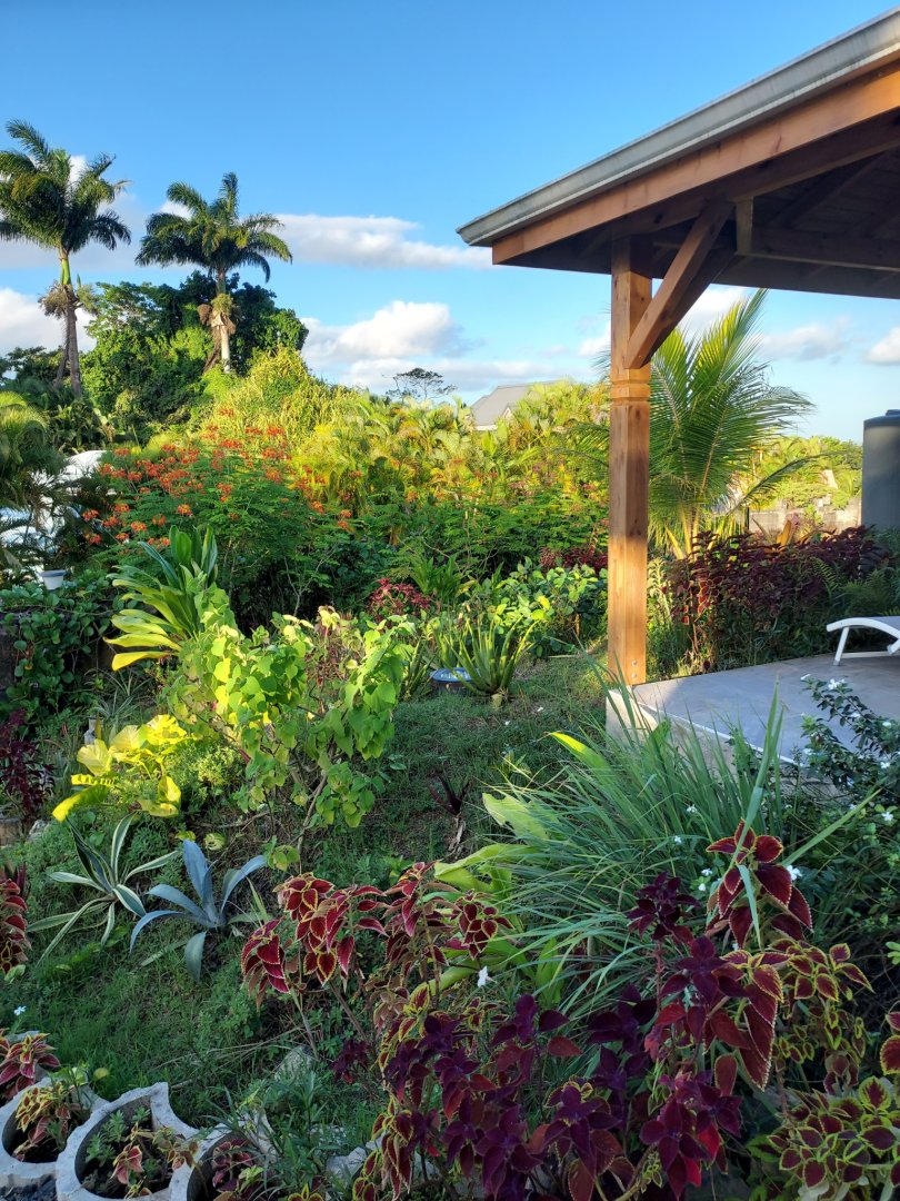 Clim et ventilateur frigo et micro ondes à l'extérieur un carbet avec table et chaises pour vous installer