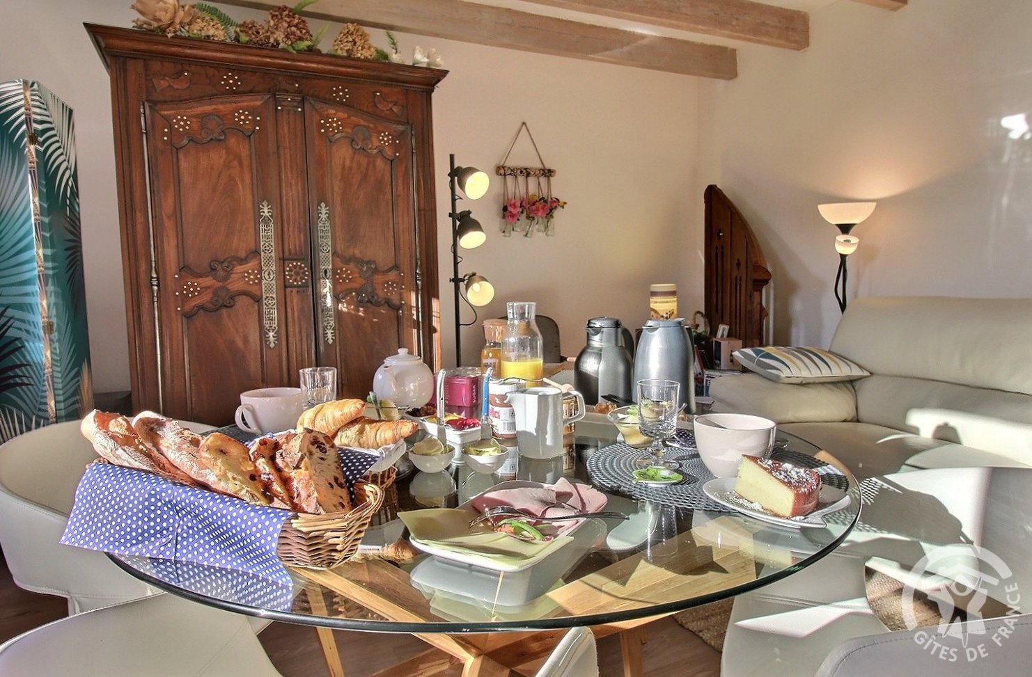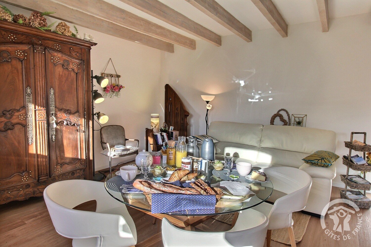 Le moment du petit déjeuner pourra tout aussi bien se dérouler sur la terrasse face au jardin ou dans le séjour de la chambre ou parfois chez la propriétaire. Anne propose volontiers du salé et du sucré dont des pâtisseries maison. Après cela rien de tel que se dégourdir les jambes sur la propriété d'1ha5 et déambuler entre les massifs. Parking dans la propriété.