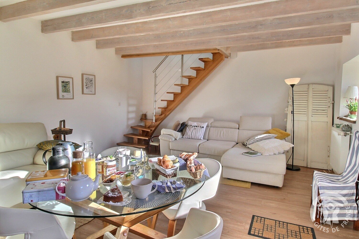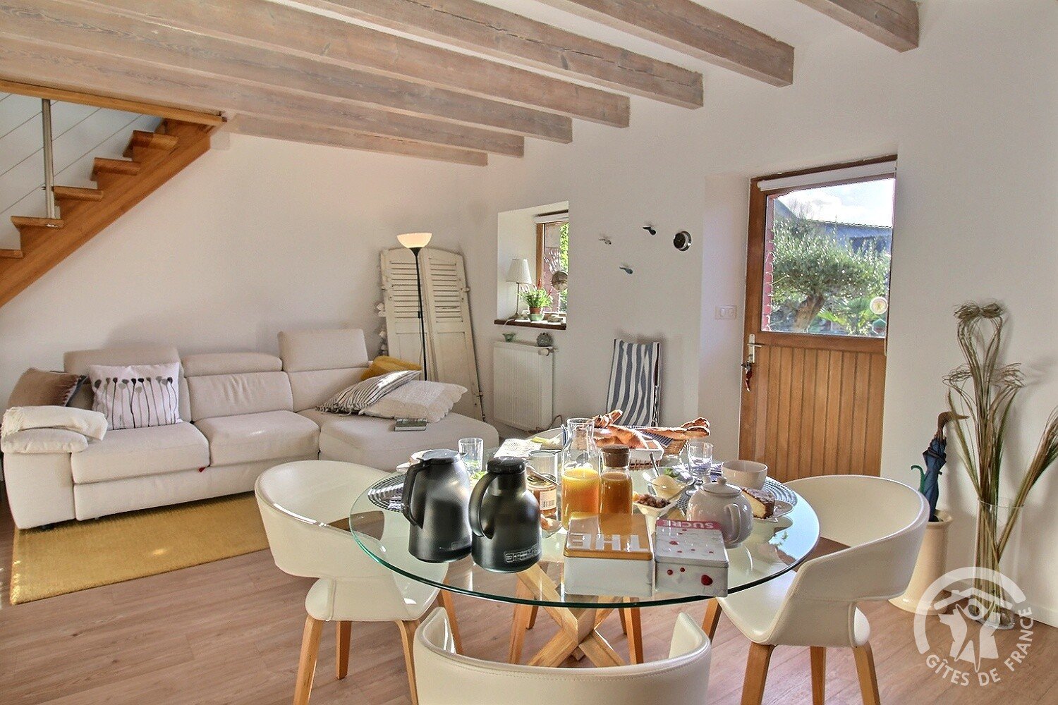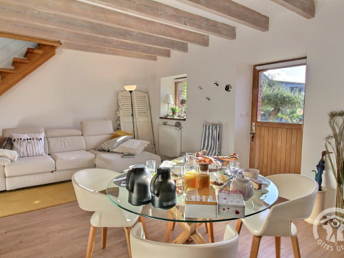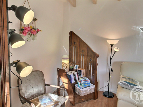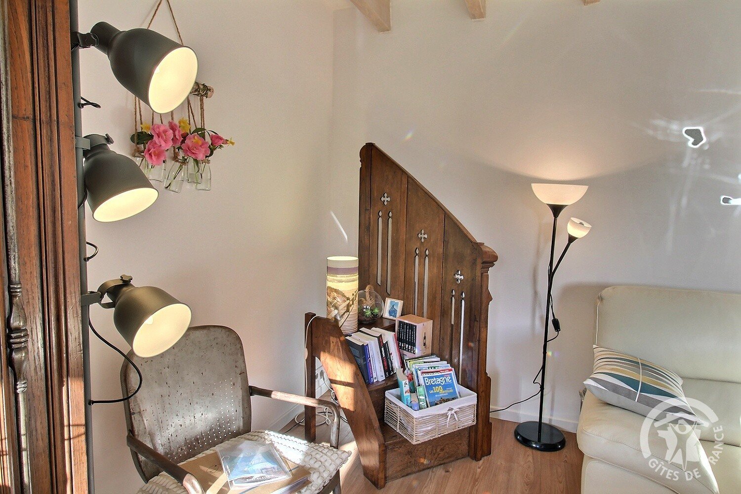 Au rez-de-chaussée : une pièce détente/salon/lecture avec coin collation (frigo, micro onde combiné, vaisselle, plateau de courtoisie). A l'étage : une grande chambre en mezzanine (1 lit 2 pers. en 160x200), une chambre plus petite (avec 2 lit 1 pers. 90X200 jumelables), une salle d'eau avec douche et vasque, un WC séparé.