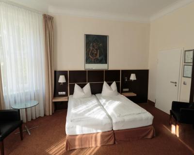 This hotel is quietly located in Berlin's upmarket Zehlendorf district, just half an hour from the famous Kurfürstendamm or Friedrichstrasse shopping streets. It occupies a wonderful villa amid ancient, shady trees.