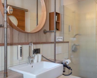 Please note that check-in takes place in the main building of the Hezelhof Hotel. The address is: Segringer Straße 7, 91550 Dinkelsbühl.