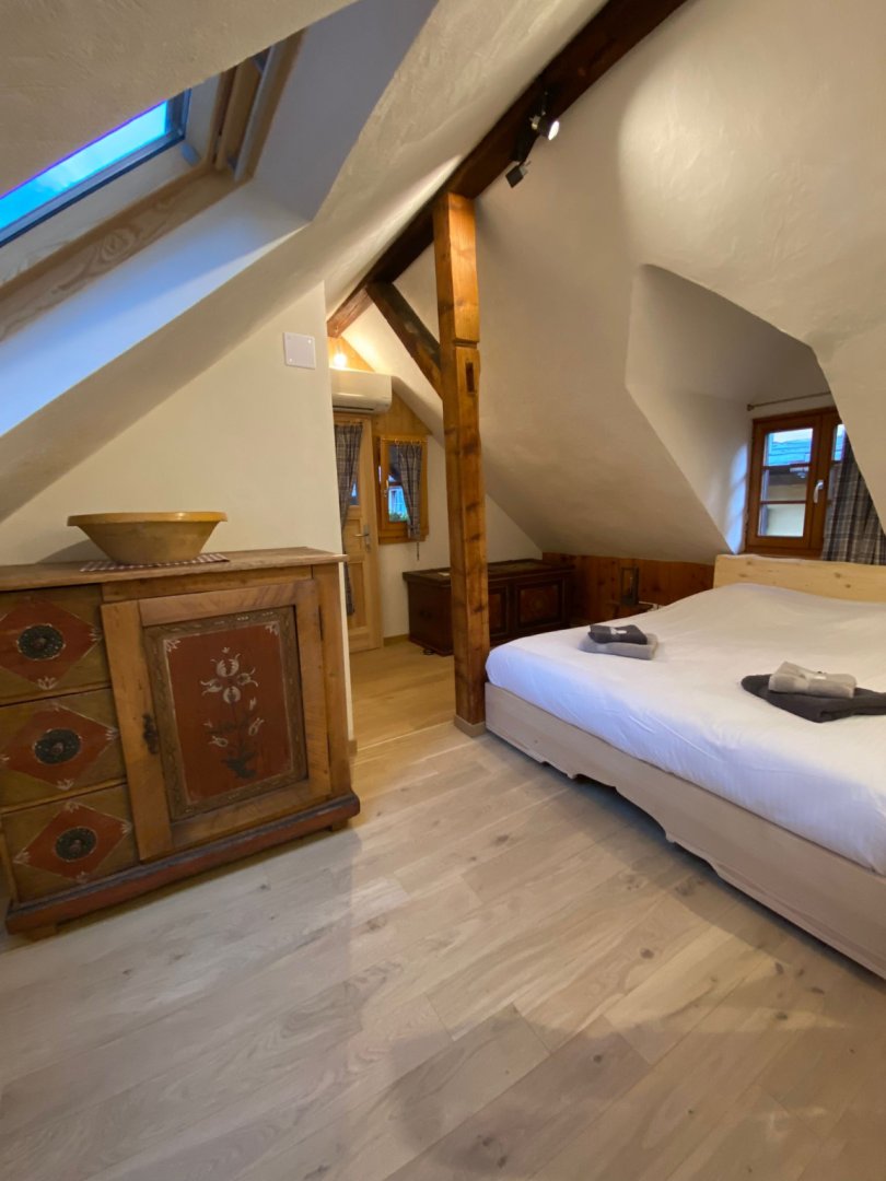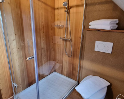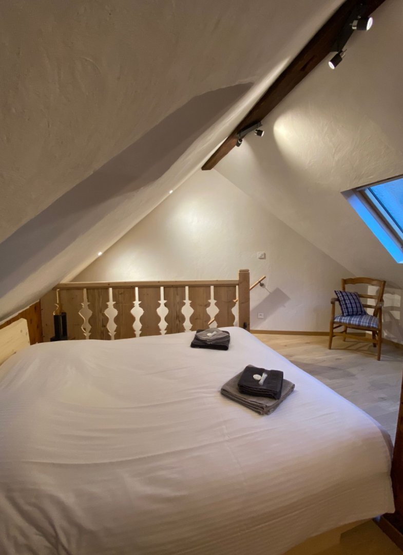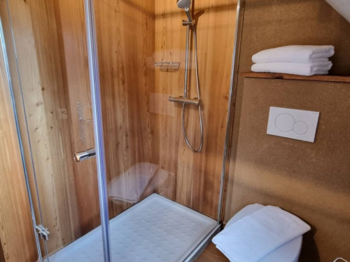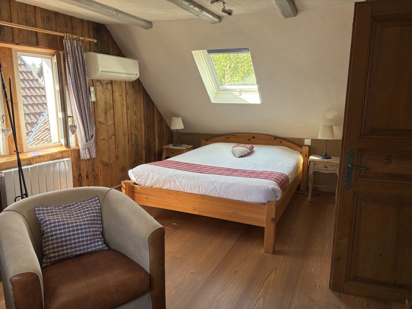 Cette belle Suite de 35 m² au décor alsacien se compose d'une chambre avec un lit 160x200 -coin salon TV et séparé un coin enfants avec un lit sous-pente de 120x180, une salle de bain- douche type italienne.
