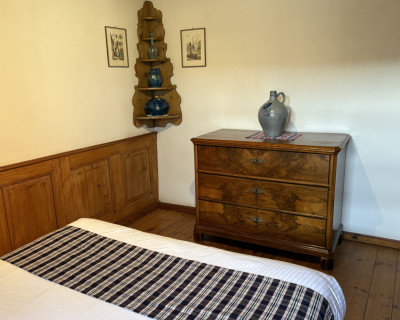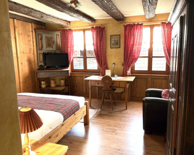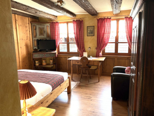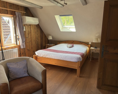 Jolie chambre au décor alsacien de 18m². Elle se compose d'un lit double 160x200, d'une télévision, d'un réfrigérateur, la climatisation et une salle de bain privative.
