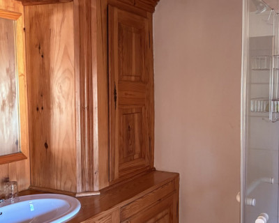 A l'entrée une table et des chaises, un micro-ondes, réfrigérateur, une machine à café. Cette Suite peut accueillir confortablement un couple ou une famille avec 2 enfants (-de 14 ans)