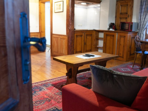 Belle suite au décor alsacien de 35m² composée d'une chambre séparé avec lit 160x200, salon TV-coin kitchenette (ustensiles de cuisine, réfrigérateur, micro-onde, machine à café). Salle de bain et toilettes séparés. Le salon avec son canapé-lit peut accueillir deux personnes supplémentaires. Doté d'un balcon, ce logement est très agréable pour de long séjour.