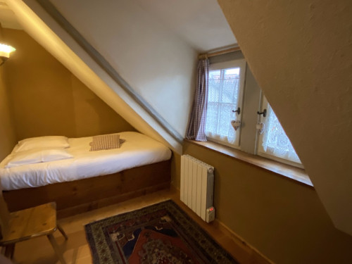 Jolie chambre au décor alsacien de 18m². Elle se compose de 2 lits simple 90x200, d'une télévision, la climatisation et une salle de bain privative.