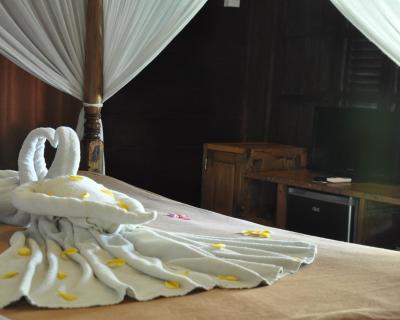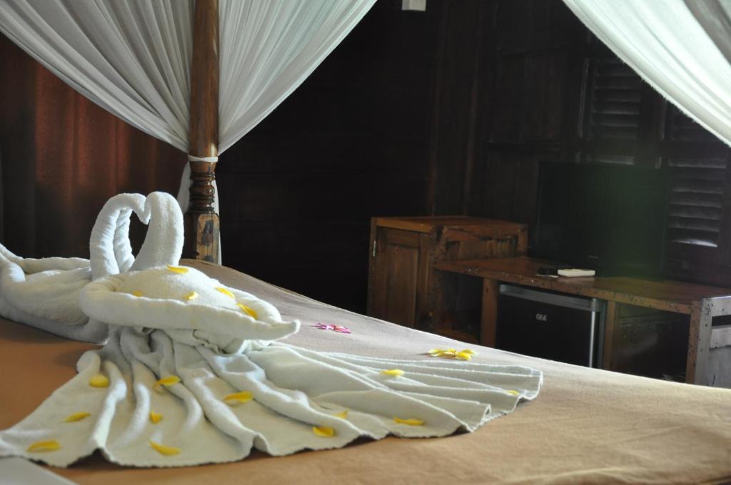 The spacious villas face a beautiful garden or rice paddy fields. Each has a terrace and seating area where guests can enjoy breakfast. It includes a personal safe, minibar and air-conditioned bedroom with a flat-screen satellite TV and private bathroom with shower facilities.