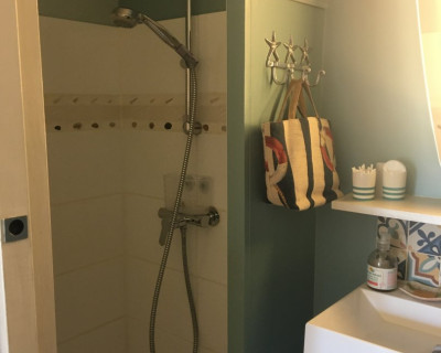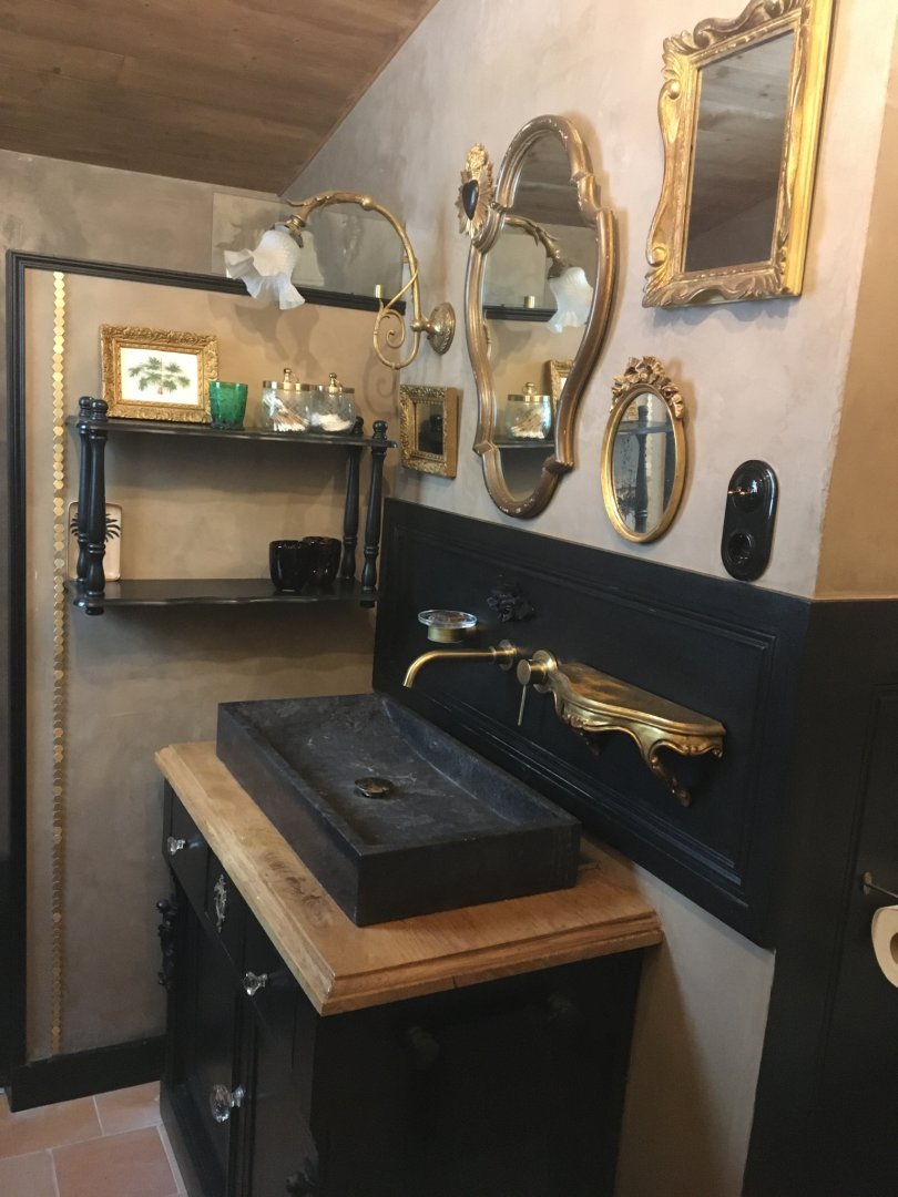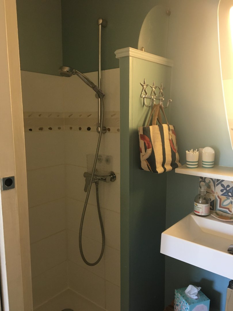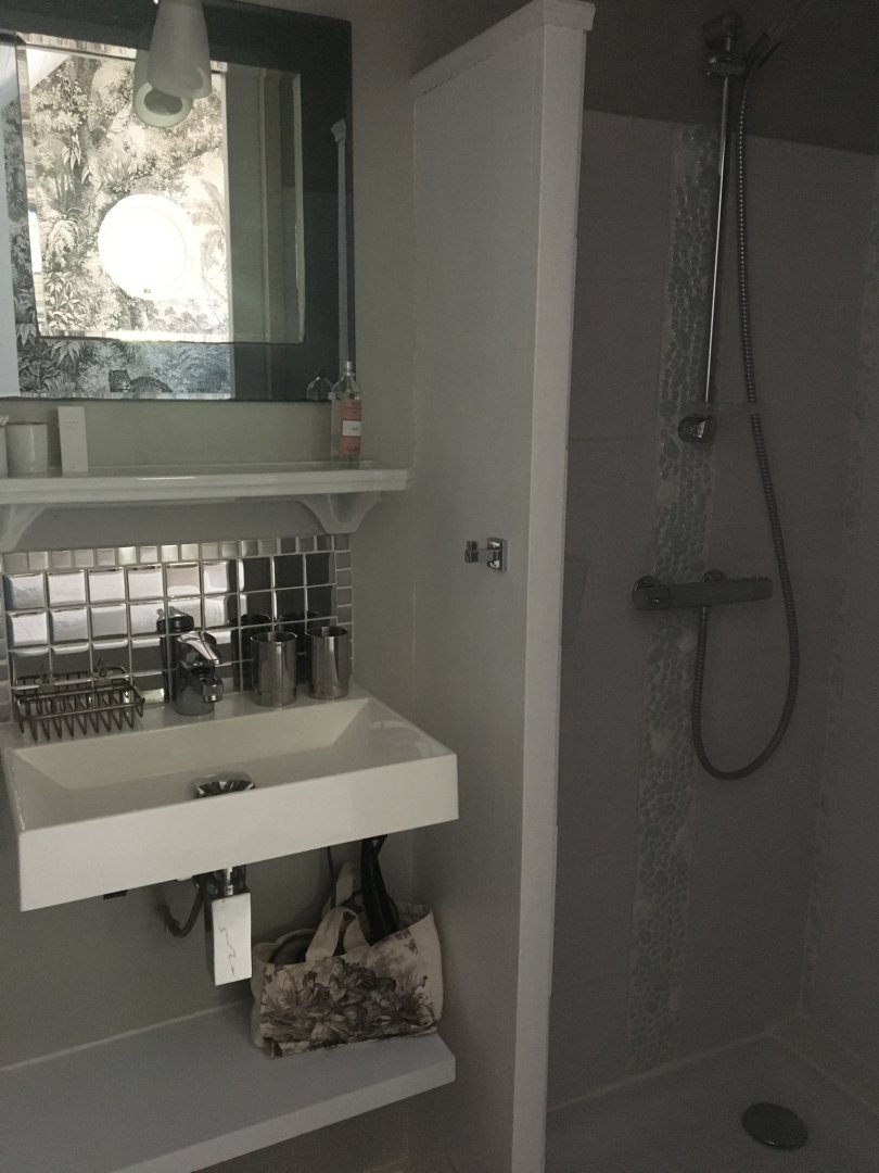 Tout est pensé pour votre confort et votre bien être, matières naturelles également dans la salle d'eau Tadelakt et terre cuite.