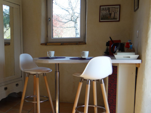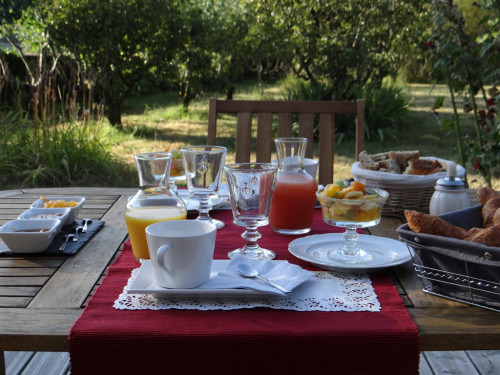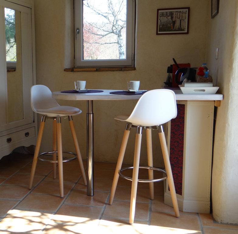 Le petit déjeuner est servi selon vos envies dans la chambre, la salle à manger ou en terrasse si le temps le permet. Une bouilloire et une machine à café est à votre disposition dans la chambre.