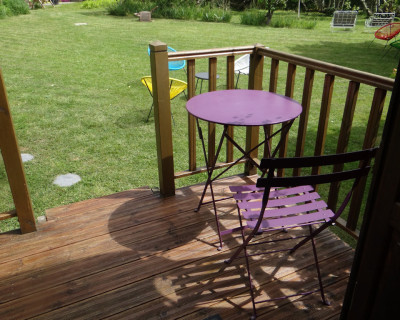 Une bonne découverte pour une 1ere nuit dans une roulotte, dans un espace verdoyant et calme. Un bon petit déjeuner copieux (salade de fruit frais) et pris une bonne douche en pleine nature. Un accueil très agréable