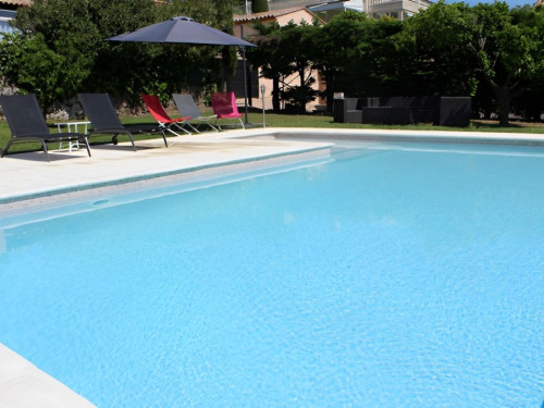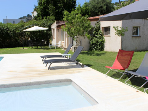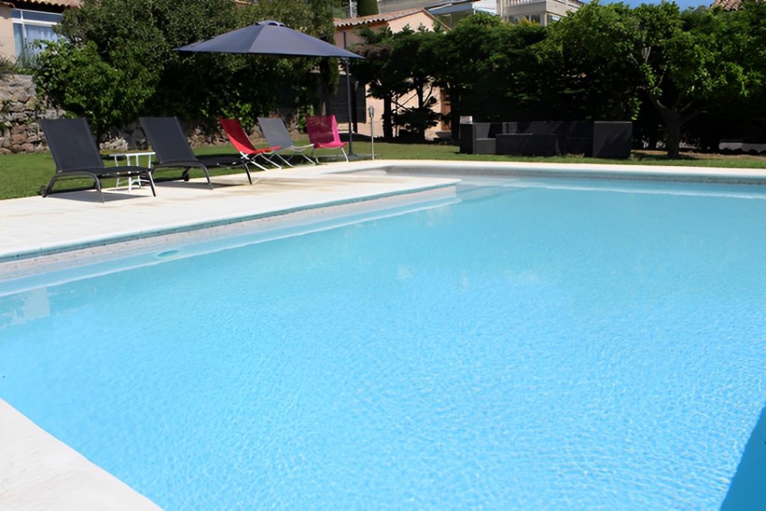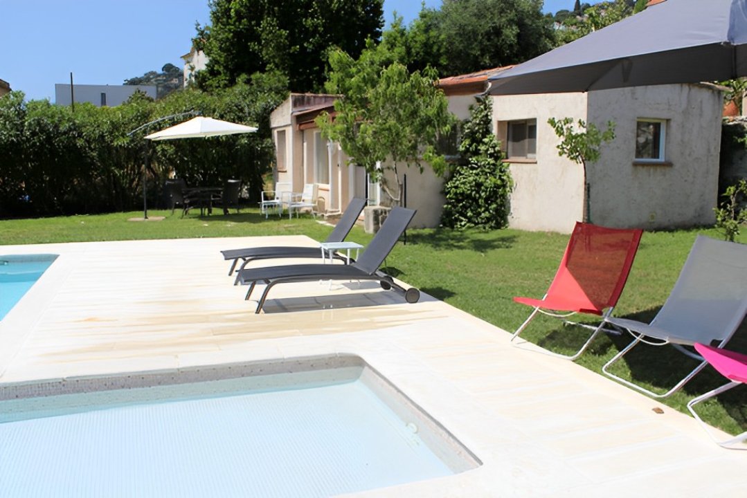 En été la piscine est juste derrière la maison, bien au calme pour profiter du climat niçois