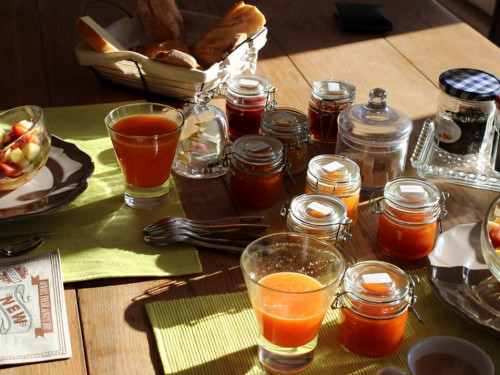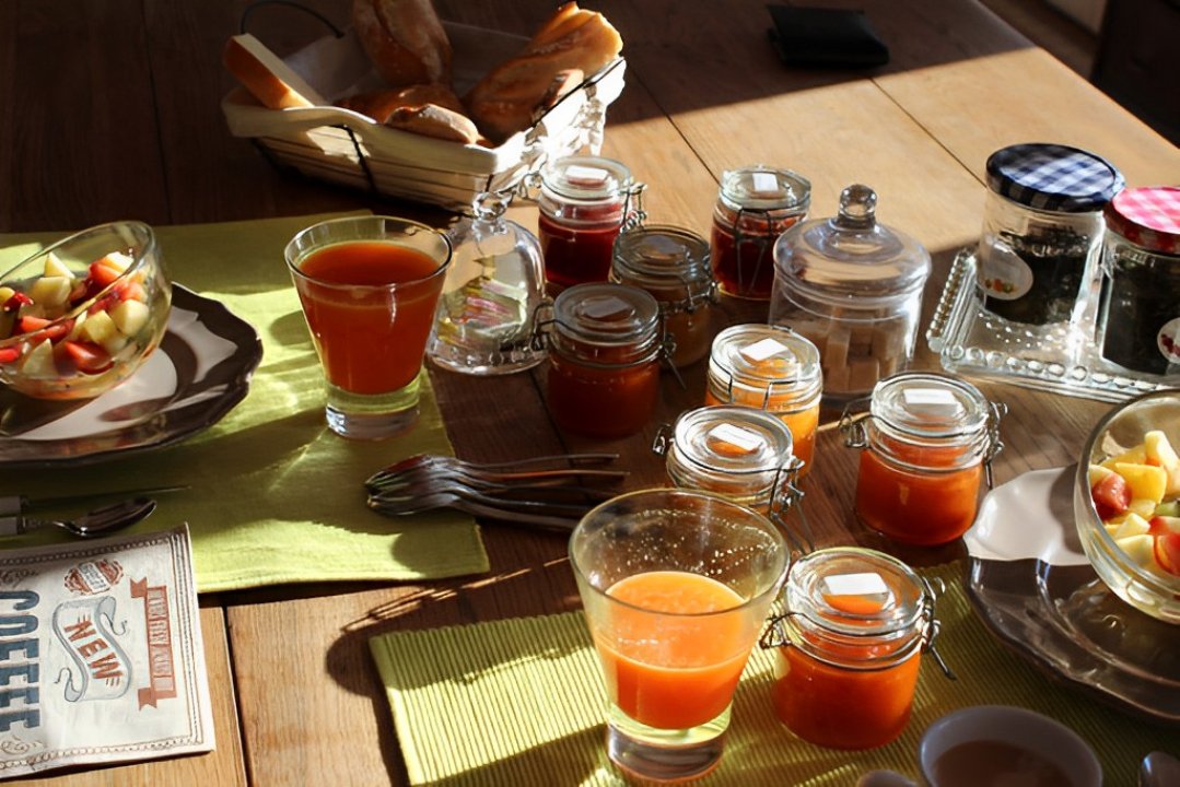 Petit déjeuner très agréable avec une vue imprenable. La demeure respire l esprit de famille