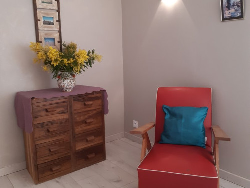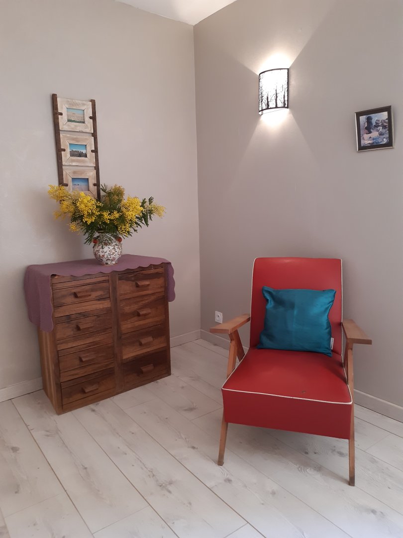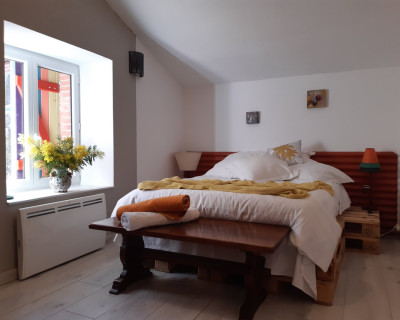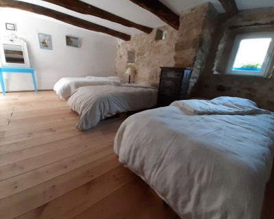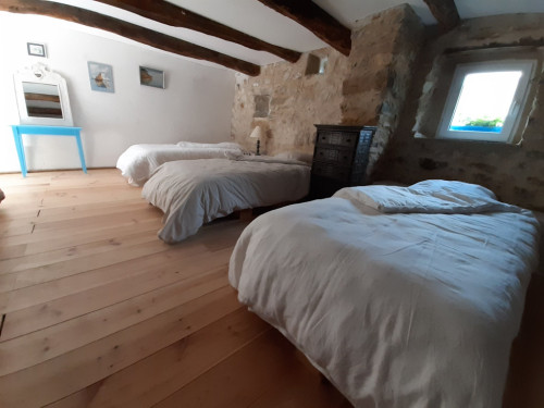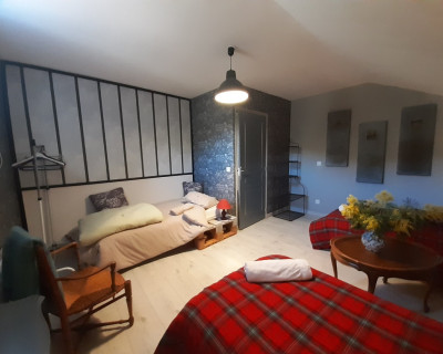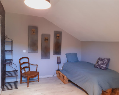 Modulable pour 3 personnes, l'espace est confortable et aménagé avec un coin lecture et des espaces de rangement.