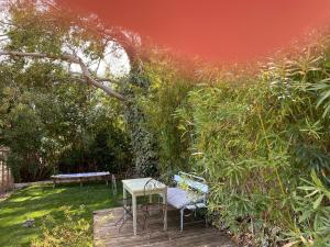Cette chambre double insonorisée dispose de la climatisation et d'une terrasse offrant une vue sur le jardin. Sa salle de bains privative est pourvue d’une douche à l'italienne. Ce logement comprend un lit.