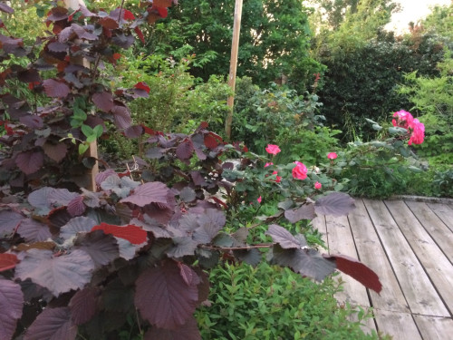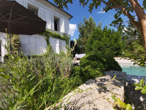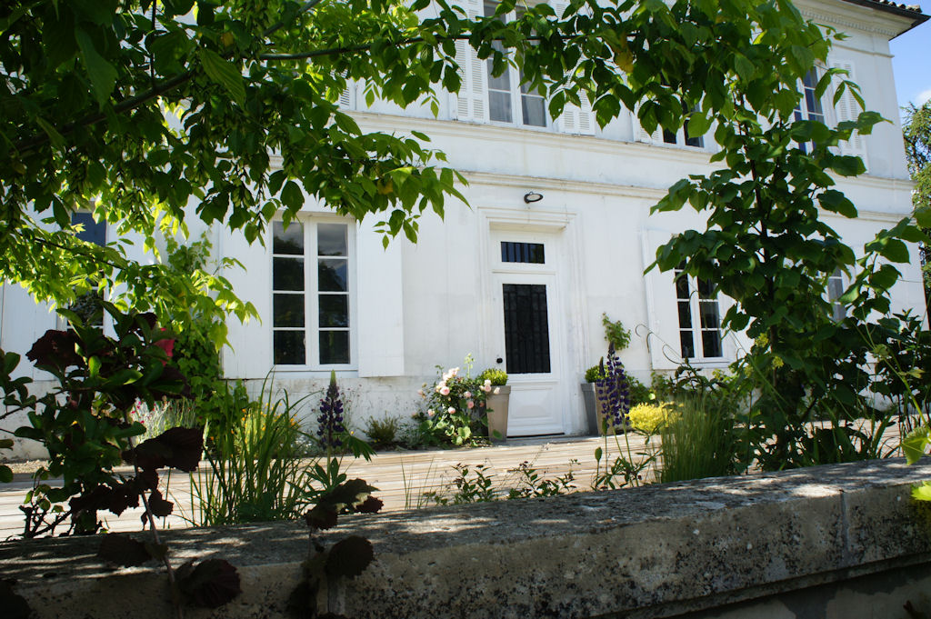 Elle est en partie bordée d’une grande terrasse, telle un grand deck en bois brut, inondée de soleil ou abritée par quelques arbustes bienfaiteurs.