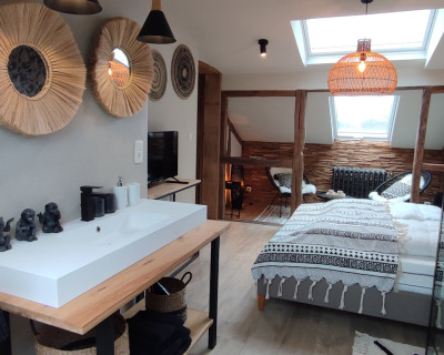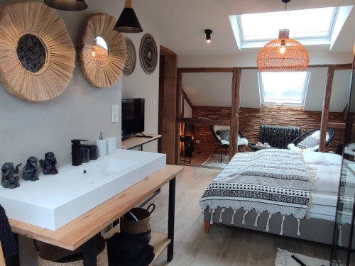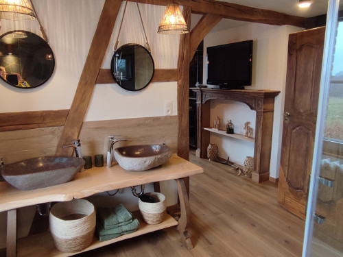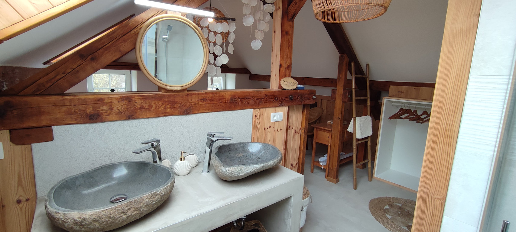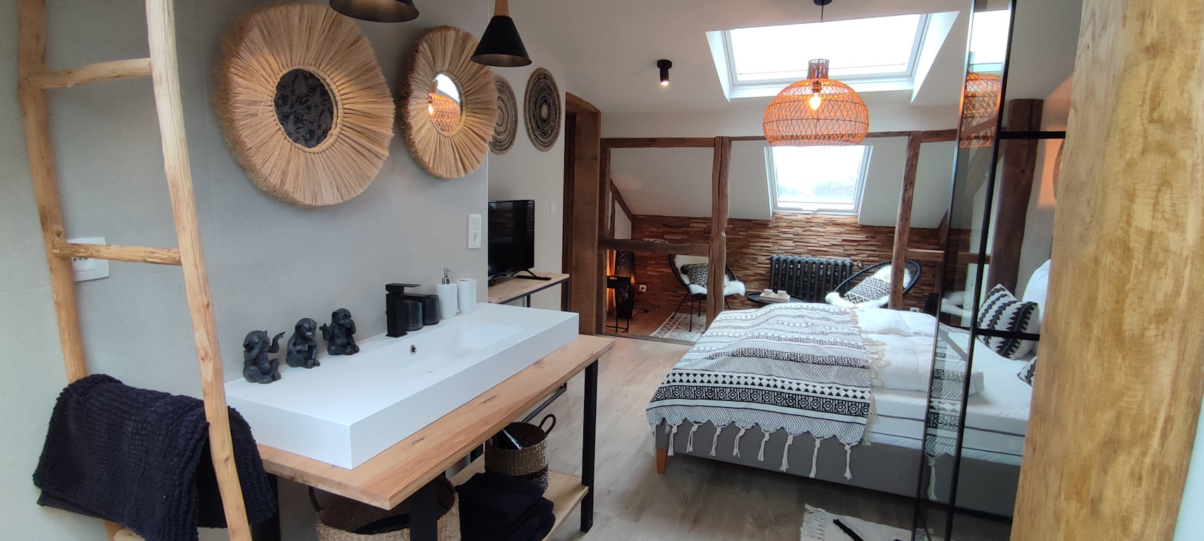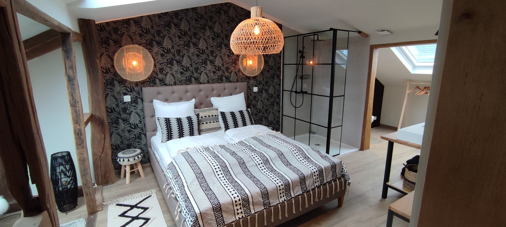 La chambre dispose de 2 fenêtres pourvues chacune d'un store.