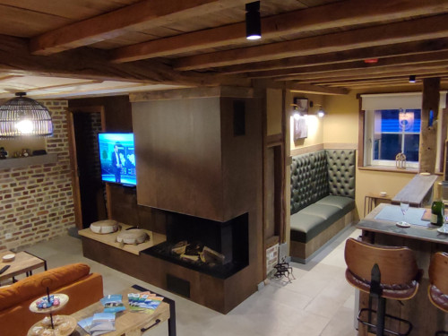 Le radiateur est un radiateur ancien décoratif et les lampes sont en bronze.
