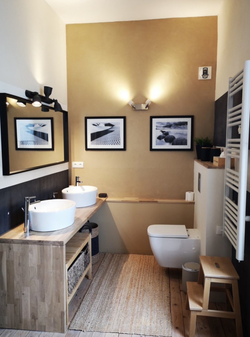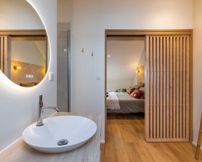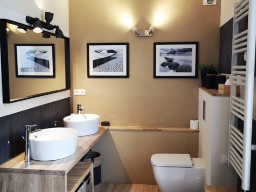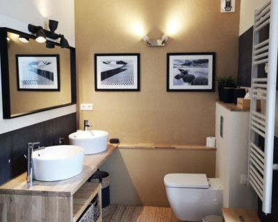 La salle de bain avec douche à l'italienne XXL est privée et attenante, le WC privé est séparé.