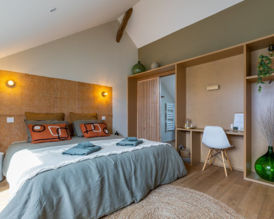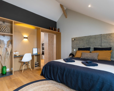 Une seconde chambre indépendante de 20 m² avec un grand lit double est proposée à côté de cette suite familiale. Elle partage la salle de douche XXL de la première grande chambre.