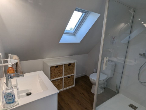 Attenant à la chambre vous aurez votre salle de douche privative avec vasque et toilette.