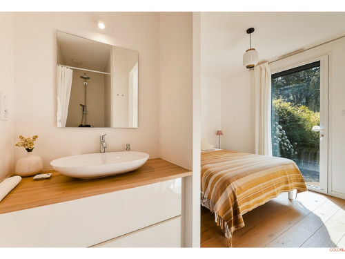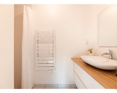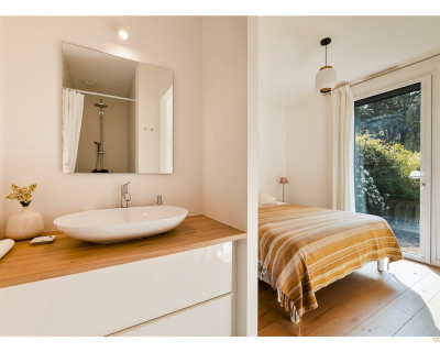 Chambre décorée avec goût, bien équipée et fonctionnelle avec un accès direct pour simplifier les allers-retours des occupants.