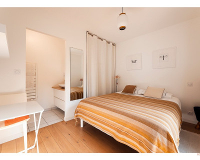 Gîte pour deux personnes, inondé de soleil : cuisine équipée, lit en 160 "belle literie", salle de bain et WC
