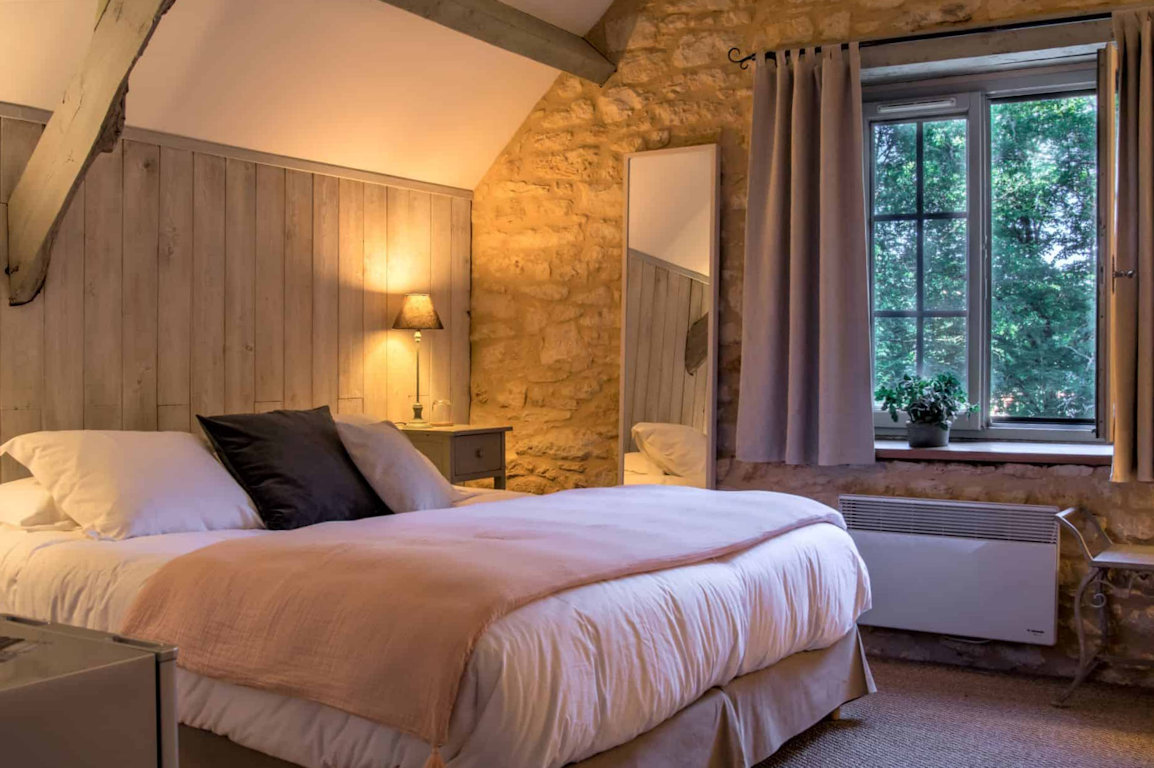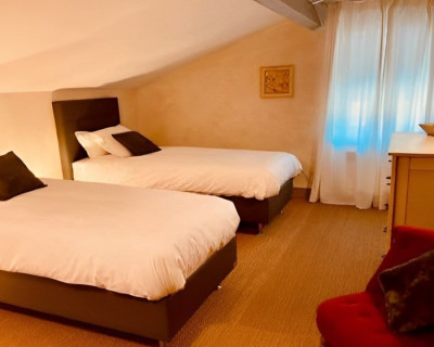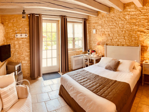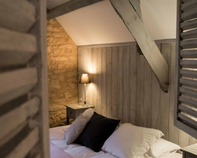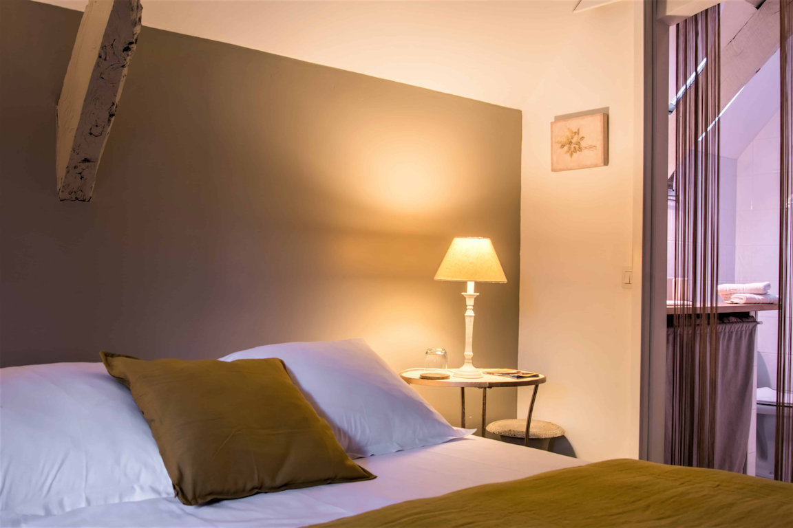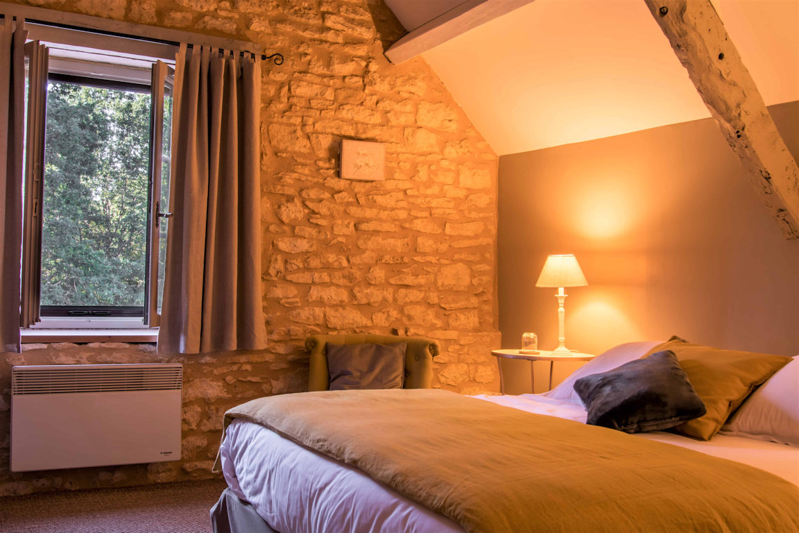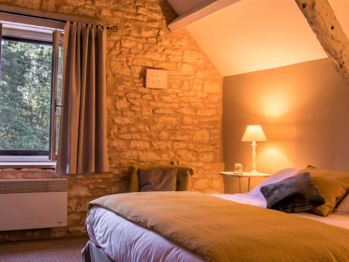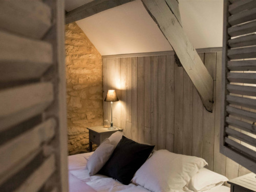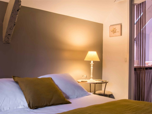 Avec poutres et pierres apparentes, elle possède un lit double de 180.