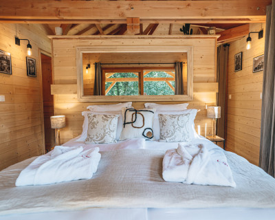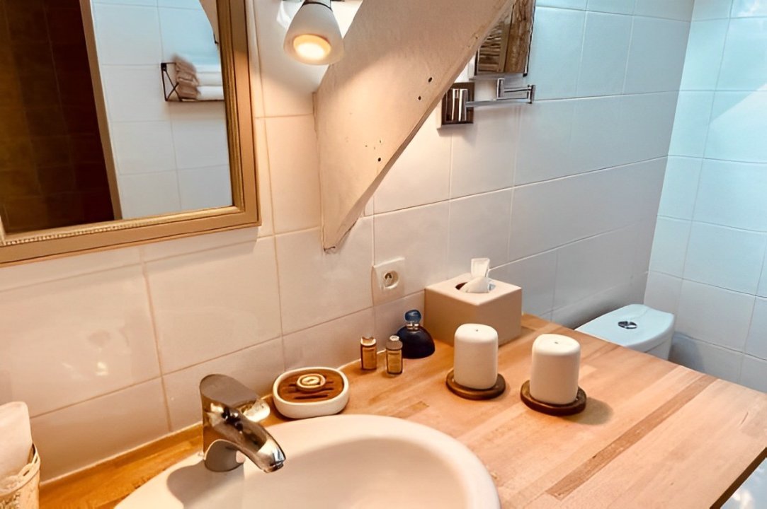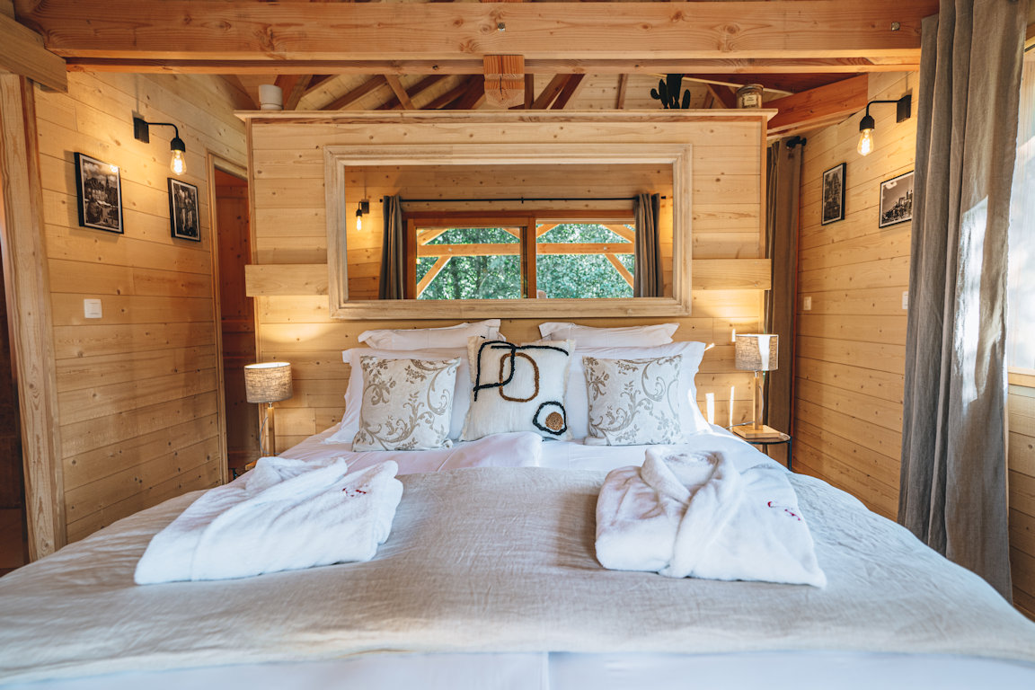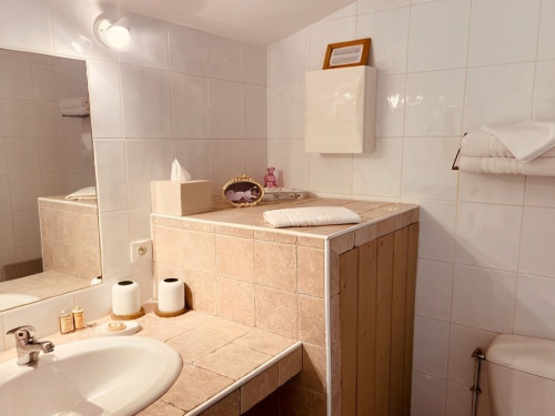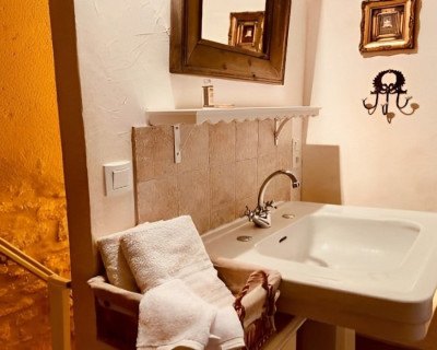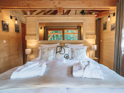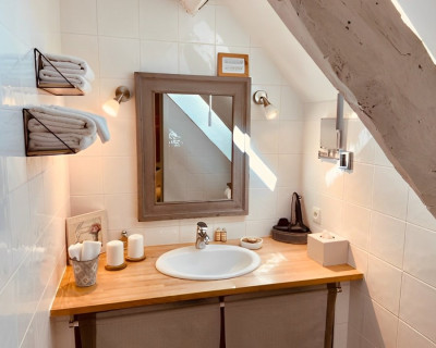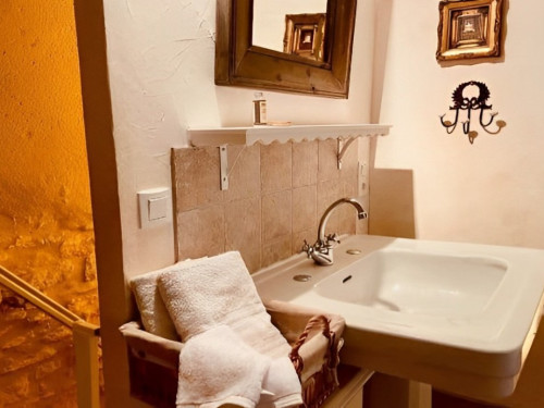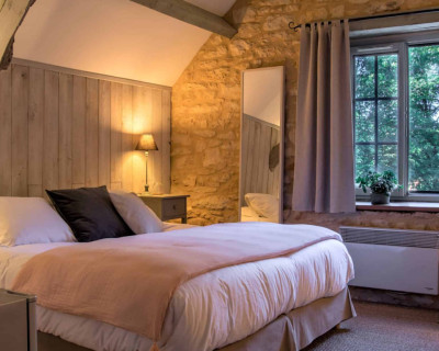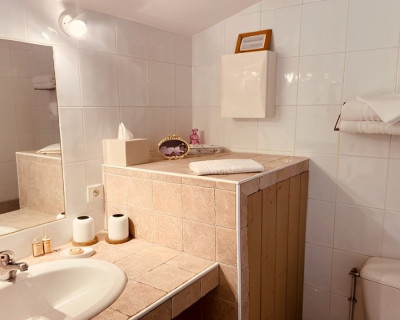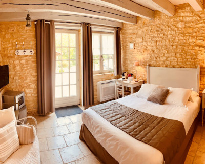 Avec poutres et pierres apparentes, elle possède un lit double de 180.