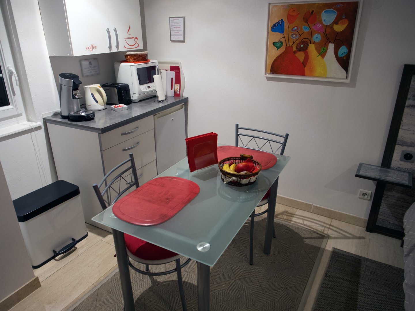 - La chambre est équipée afin de prendre votre petit déjeuner ou réchauffer un plat au micro-ondes.