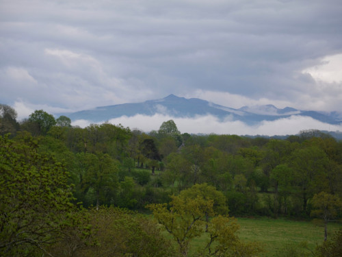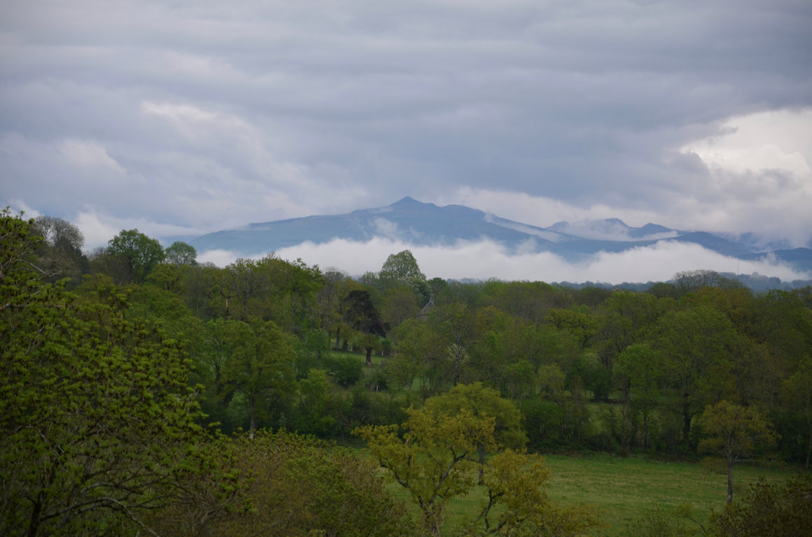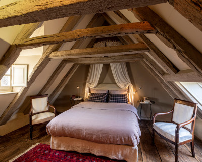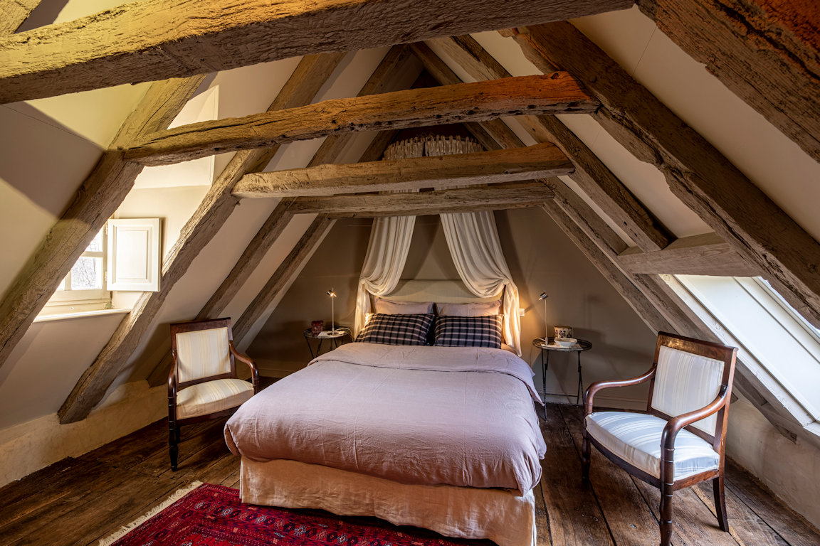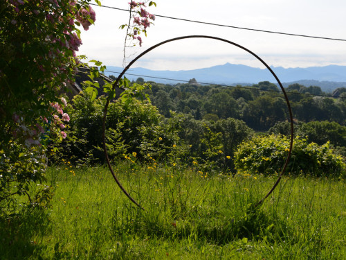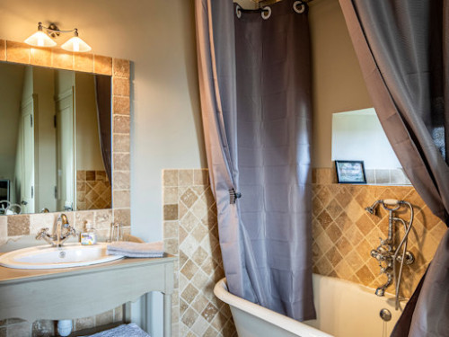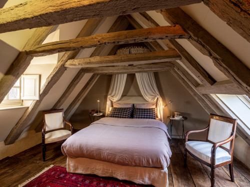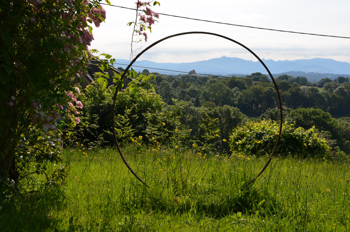À l’étage : chambre avec vue sur le jardin, salle d’eau avec douche, lit 160x200 cm.