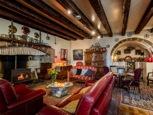 Au rez-de-chaussée : salon, lit 80x190 cm et toilette.