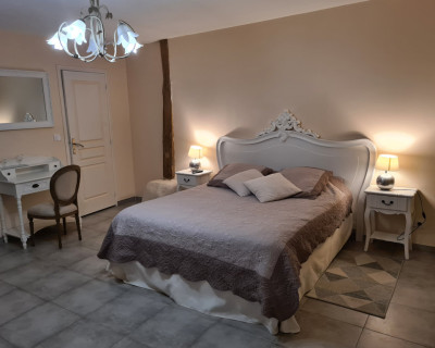 Une chambre d'hôte spacieuse, joliment décorée et bien équipée.