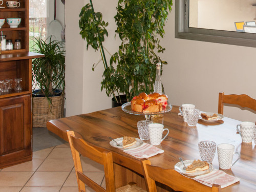 Petits déjeuners et dîners copieux avec les produits du jardin et locaux.