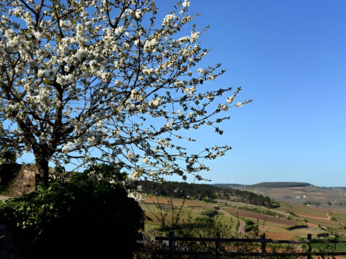 Enfin la maison est « noyée » dans la verdure, arbres, arbustes, plantes et fleurs. Le petit déjeuner est pris sur la terrasse à l’ombre ou au soleil comme on préfère (voir photos) et toujours « la superbe vue » sur les coteaux des vignes et au pied la ville de Beaune…