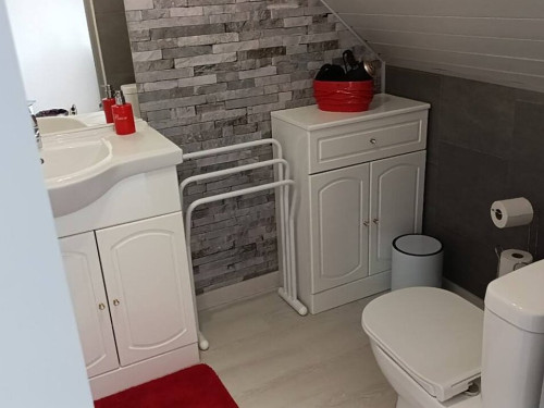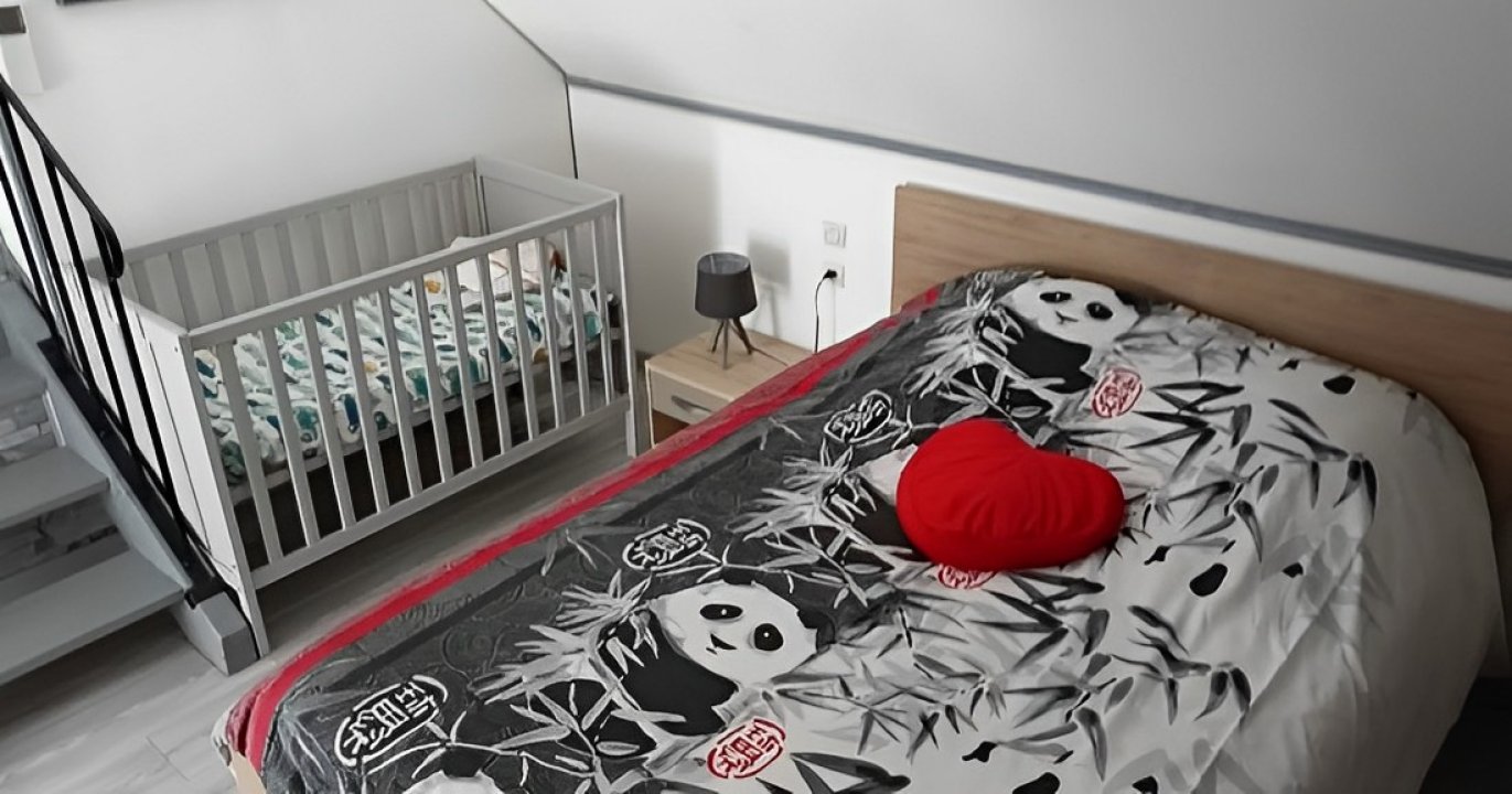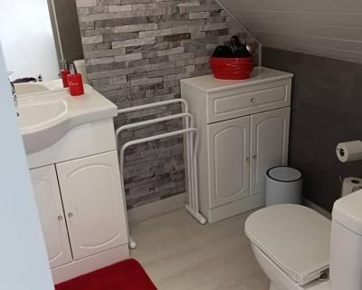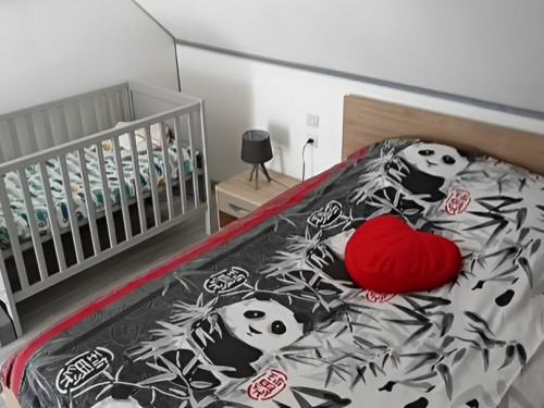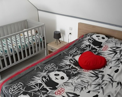 2ème chambre : 1 lit de 140 + lit de bébé + petit salon + accès à la salle de douche WC.